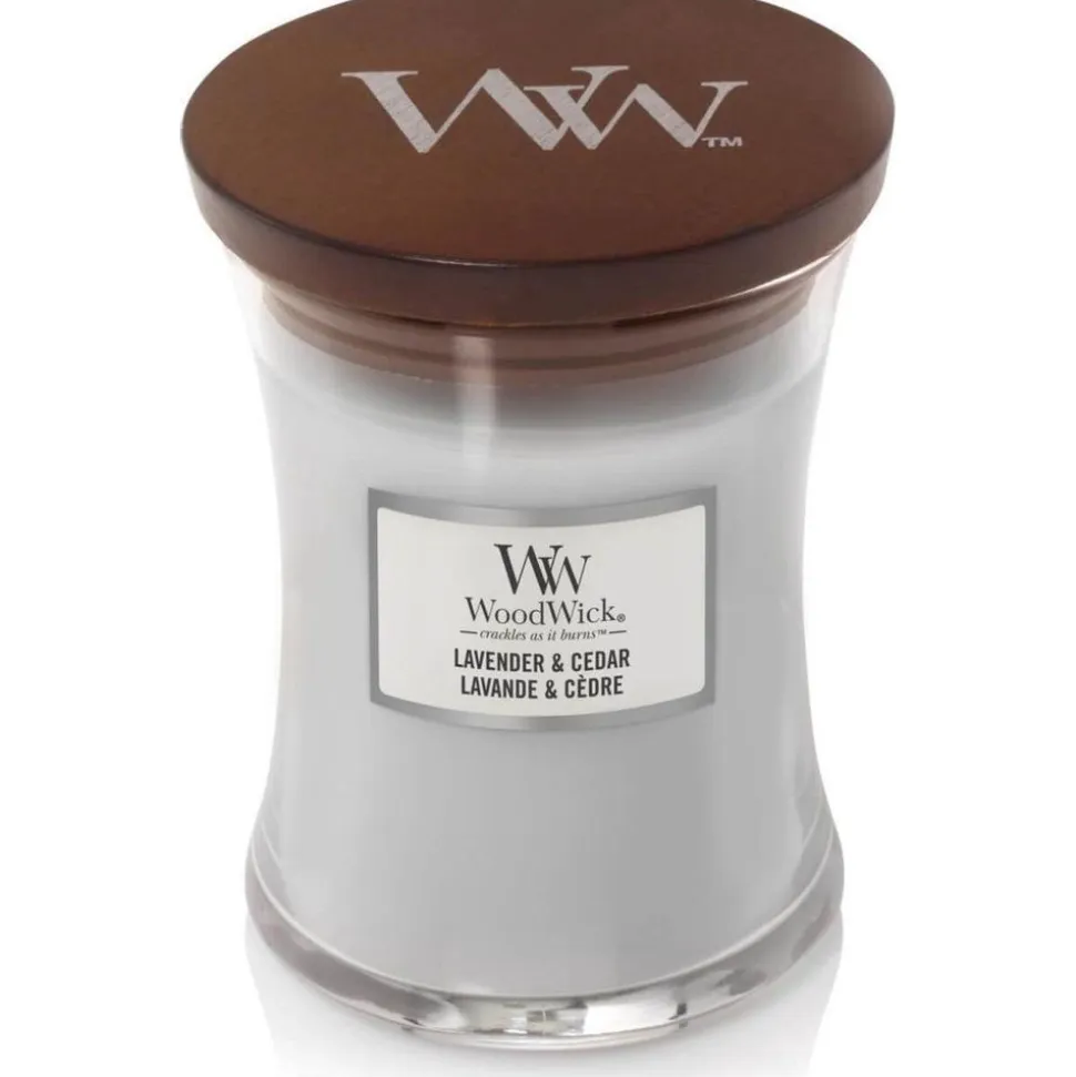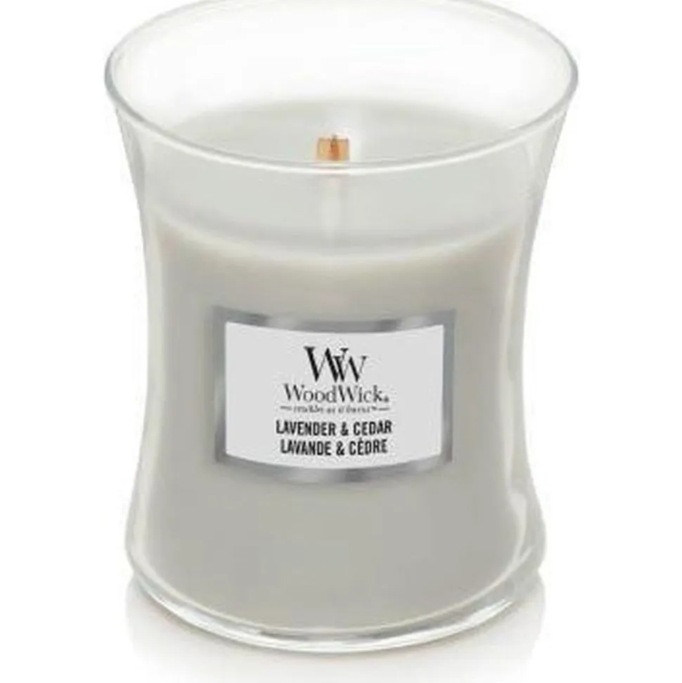 De WoodWick Geurkaars Medium Lavender & Cedar is een heerlijke geurkaars die zorgt voor een ontspannen sfeer in huis. De combinatie van lavendel en cederhout zorgt voor een rustgevende en warme geurervaring. De kaars is gemaakt van hoogwaardige sojawas en heeft een houten lont, waardoor de kaars een knisperend geluid maakt tijdens het branden. De geurkaars heeft een brandtijd van ongeveer 60 uur en wordt geleverd in een stijlvol glazen potje met houten deksel.
