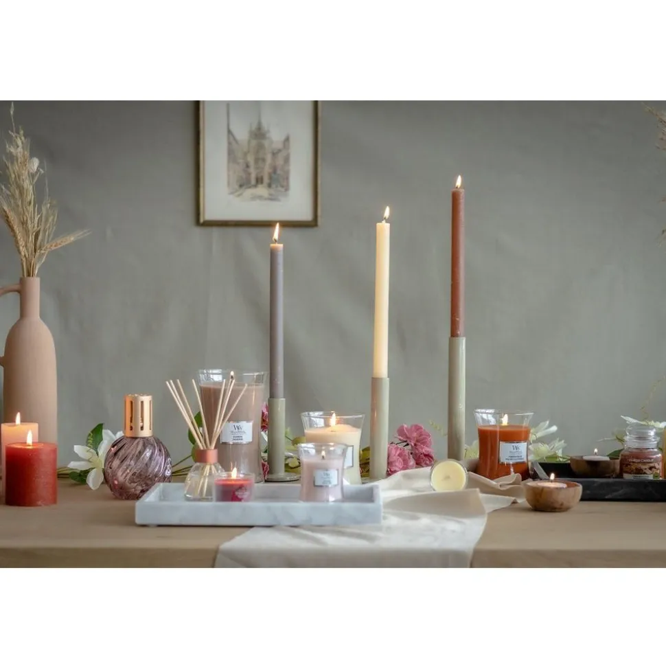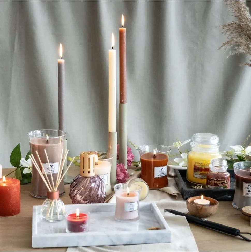 Alle Woodwick kaarsen zijn gemaakt op basis van Soja was en hebben een houten lont. De houten lont zorgt ervoor dat de kaars gezellig knispert, net als een haardvuurtje!
