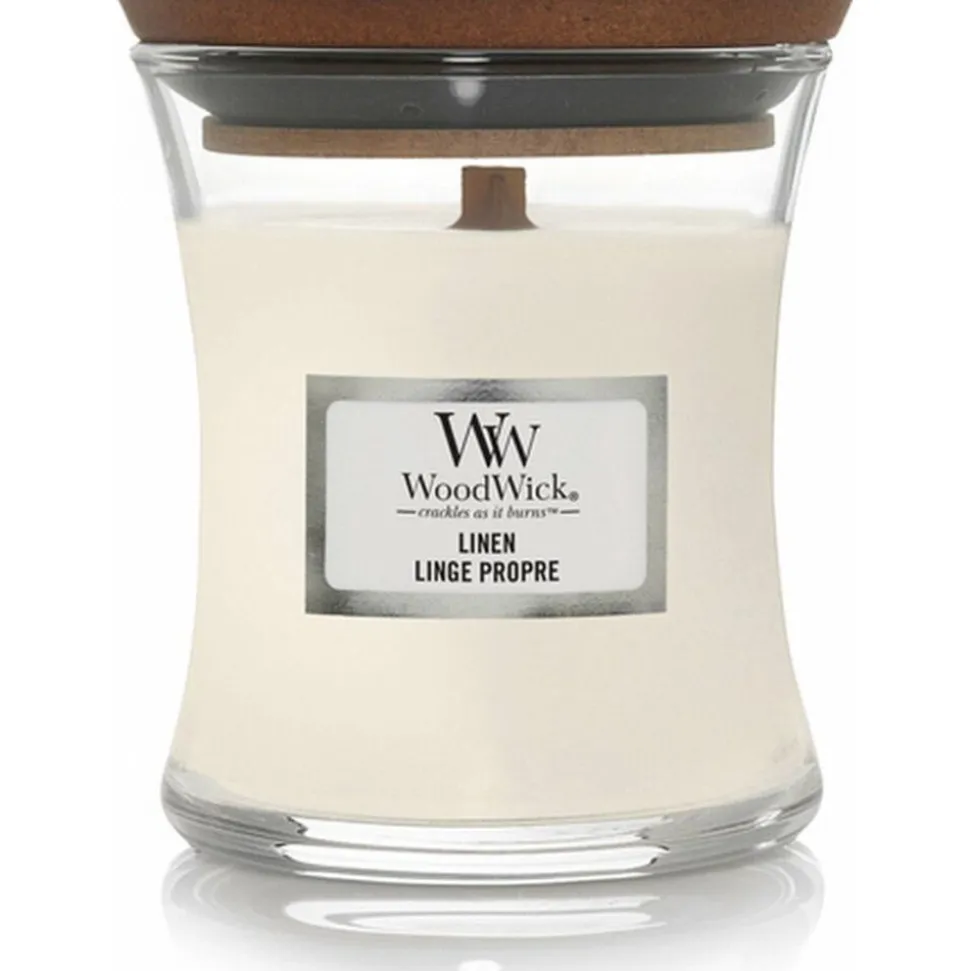 - WoodWick Linen Mini Candle is een frisse geurkaars die zorgt voor een heerlijke geur én sfeer in jouw huis