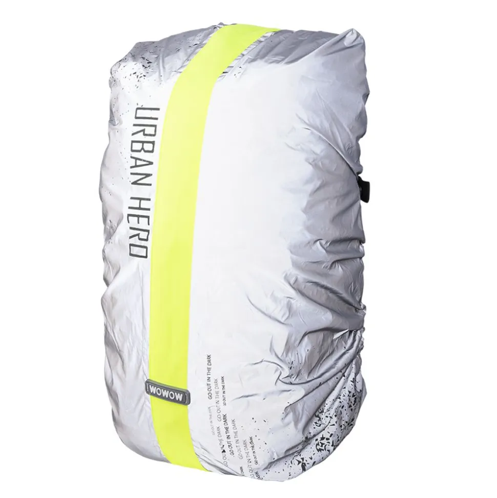 Wowow waterafstotende cover voor backpacks van 30-35 liter. De cover is volledig reflecterend en afgezet met een fluo gele band. De Urban Hero cover omsluit de backpack met twee aantrekbare elastieken. Het is mogelijk verlichting aan de cover te bevestigen.