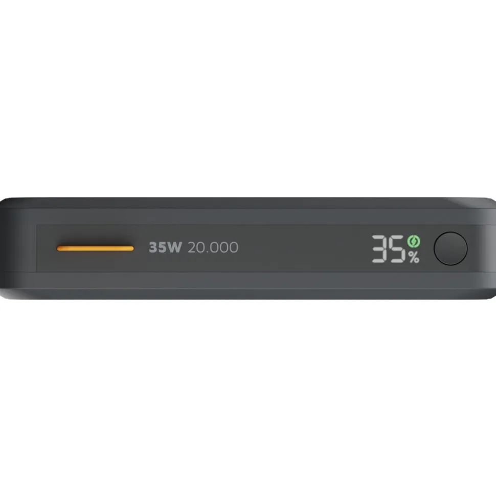Deze krachtige maar compacte powerbank heeft een batterijcapaciteit van 20.000 mAh en is uitgerust met twee USB-C PD-poorten en één USB-A-poort. De 35W USB-C PD-uitgang is ideaal voor het snel opladen van bijvoorbeeld uw smartphone of tablet. De powerbank is grotendeels gemaakt van gerecycled plastic, waardoor het een duurzamer product is.