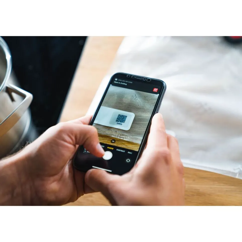 - Met de QR-code koppel je de vacuümzak heel gemakkelijk aan de ZWILLING Culinary World App. Zo vind je je voedsel meteen terug en weet je hoelang het nog goed blijft.