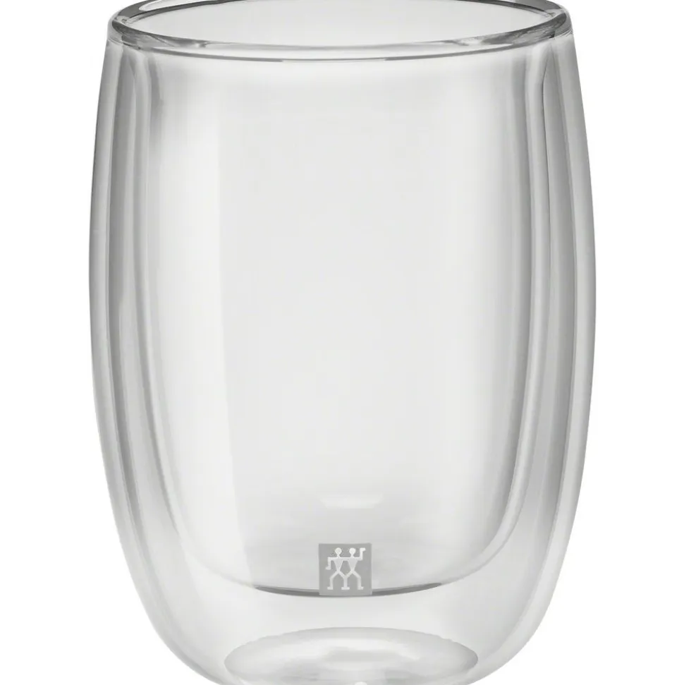 Met deze tweedelige koffieset uit de ZWILLING® Sorrento-serie wordt de warme drank een heel speciale traktatie. De set bevat twee dubbelwandige glazen, elk met een inhoud van 200 ml, wat precies het juiste deel is voor een kopje koffie wanneer het tijd is voor een wake-up agent. Het vacuüm tussen de glazen wanden isoleert en laat de warmte niet naar buiten ontsnappen. Het voordeel: het drankje blijft warm, terwijl het glas aan de buitenkant koud blijft en gemakkelijk in de hand kan worden gehouden. Optisch zijn de schepen een plezier.