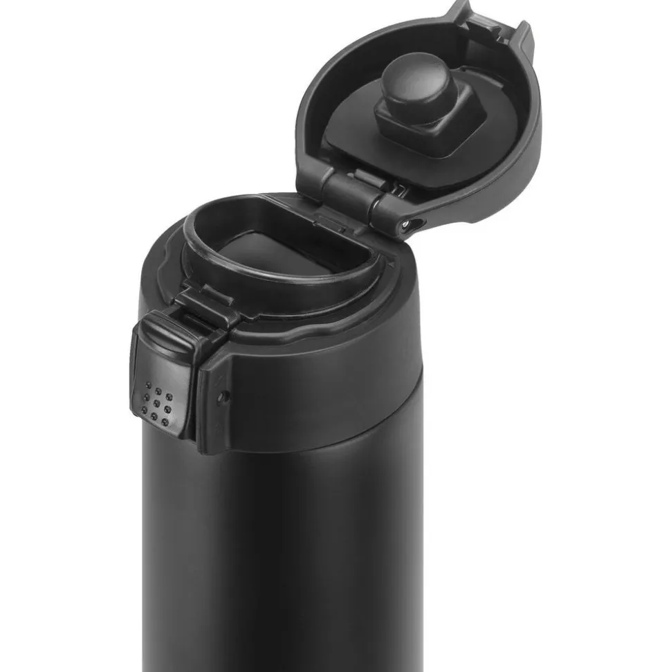 De Thermo Travel Bottle is ideaal om koffie, thee of koude dranken mee te nemen naar het werk, op autoritten of naar sportevenementen. Warme dranken blijven tot 7 uur warm, terwijl koude dranken tot 12 uur koud blijven. Het met één druk op de knop te openen deksel is gemaakt voor bediening met één hand, met een veiligheidsvergrendeling om onbedoeld openen te voorkomen. En de antislipbodem voorkomt morsen tijdens het vullen. Het afneembare deksel maakt het opruimen een makkie, vooral wanneer het in de vaatwasser wordt gegooid. Deze aantrekkelijke fles is verkrijgbaar in zilverwit en mat zwart en is een stijlvolle manier om drankjes mee te nemen.