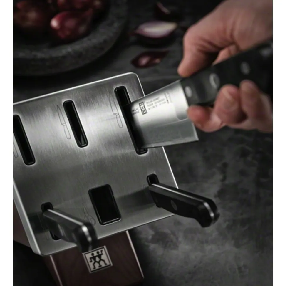 Bescherm je investering met de zelfslijpende messenblokken van ZWILLING®. Telkens wanneer de messen in of uit hun gleuf worden genomen, scherpen de ingebouwde keramische slijpstenen automatisch de fijne zijde van het lemmet aan. Comfortabel én veilig snijden lukt immers alleen met vlijmscherpe messen.