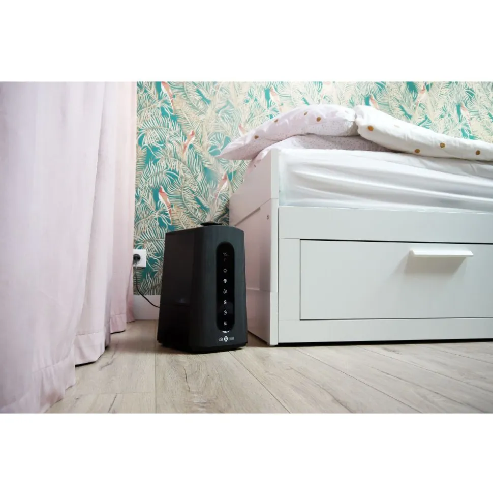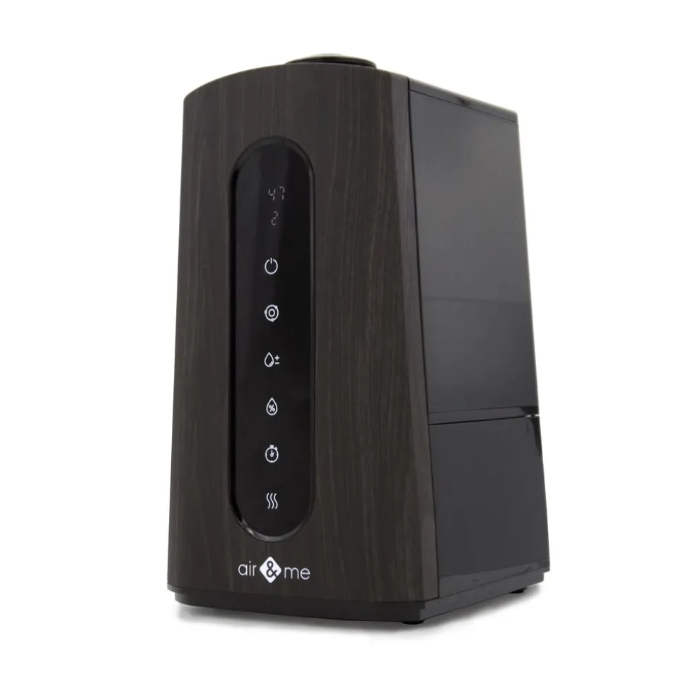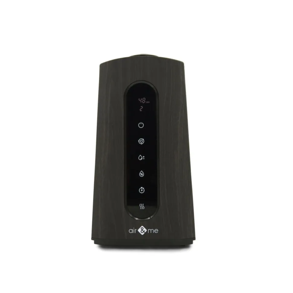 Qua design mag de Air & Me Clarence er alvast wezen met zijn zwarte wood look. Met zijn talrijke functies, waaronder de HygroSmart® die zorgt voor een automatische regeling van het toestel en zijn 5 L waterreservoir, voldoet hij aan de hoogste eisen. Voor een gezonde en optimale verneveling beschikt de Clarence over een ionisator en 2 bevochtigings- modi: koude en warme nevel (40-45°). Bovendien is de bediening van het apparaat zeer praktisch dankzij de besturing op afstand via een app.