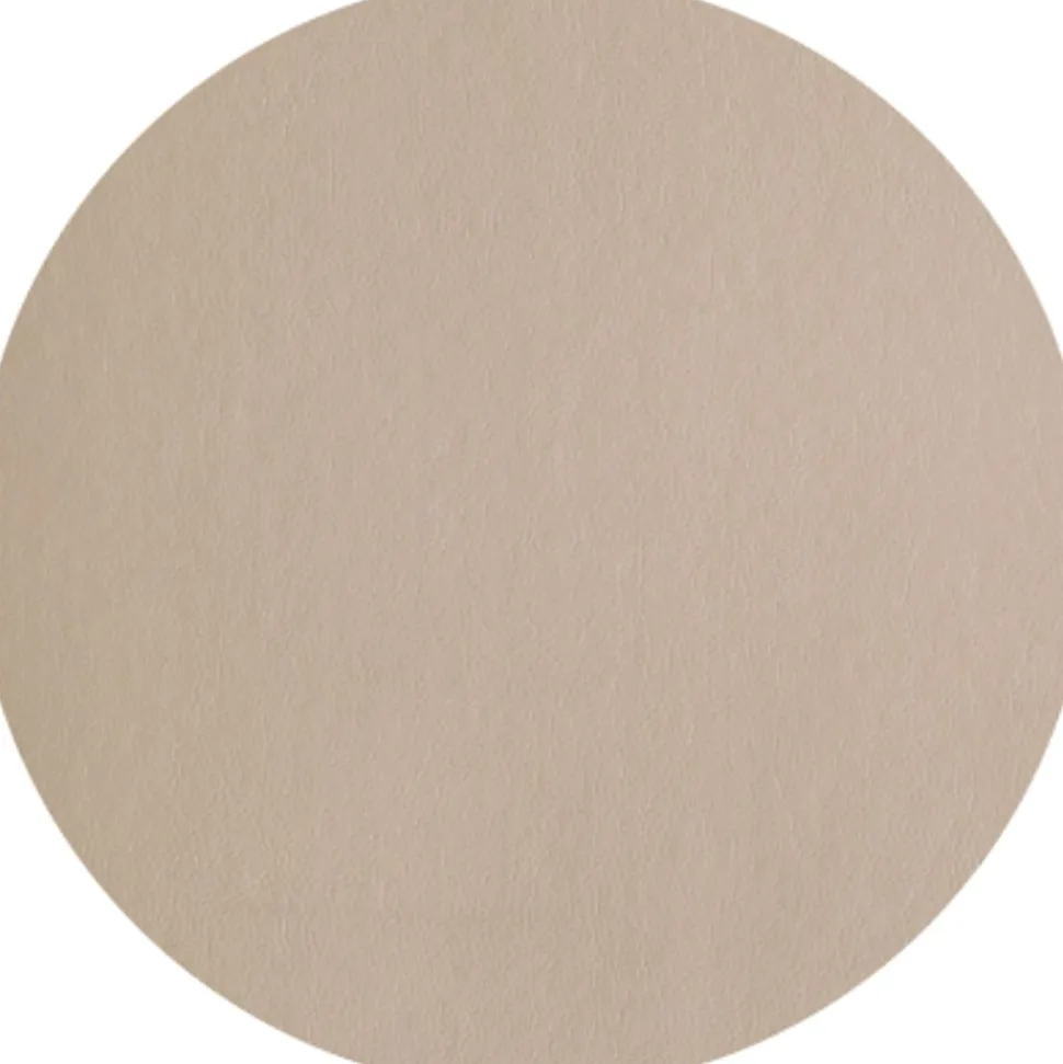 Beige imitatieleren placemat met een diameter van 38 cm. De placemat is gemaakt van imitatieleer en is uiterst elegant door de typische leerstructuur. Tegelijkertijd kan het gemakkelijk met water worden gereinigd en combineert zo de visuele voordelen van leer met de praktische voordelen van een imitatie. De beige kleur “stone” biedt een mooi contrast met licht en donker servies en is harmonieus te combineren met andere kleuren uit onze tafelbladencollectie.