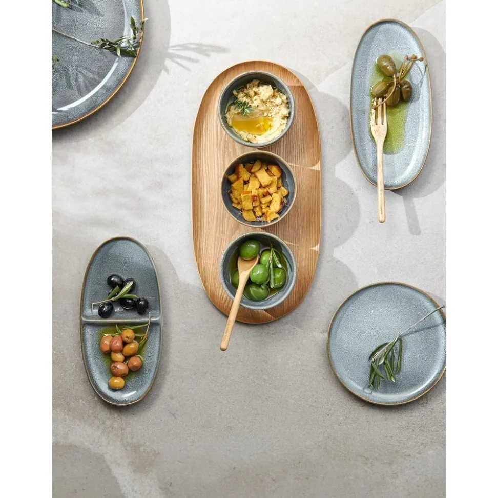 De collectie ‘saisons’ wordt met de hand gemaakt van steengoed in een klein familiebedrijf in Portugal. Drie glazuren – zand, denim en nachtblauw – imiteren de Portugese kust en symboliseren de zee, de lucht en de stranden. Net zoals de oceaan soms meer, soms minder diepblauw is, het zand op het strand soms meer, soms minder fijn is en de lucht soms meer, soms minder wolkenloos is, geldt hetzelfde voor de glazuren in deze collectie. Elk onderdeel is werkelijk uniek. Alle drie de kleuren harmoniëren met elkaar of staan ??op zichzelf. Een verscheidenheid aan vormen voor elke gelegenheid in een duidelijke, gereduceerde vormentaal.