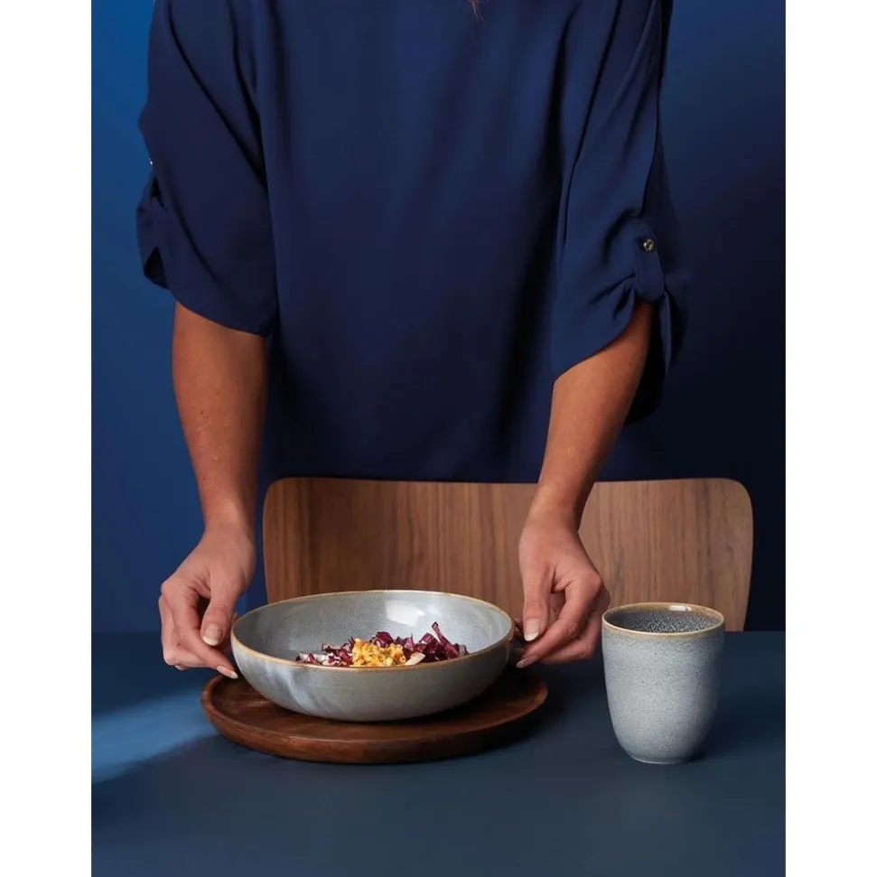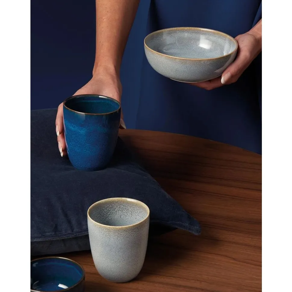 De collectie ‘saisons’ wordt met de hand gemaakt van steengoed in een klein familiebedrijf in Portugal. Drie glazuren – zand, denim en nachtblauw – imiteren de Portugese kust en symboliseren de zee, de lucht en de stranden. Net zoals de oceaan soms meer, soms minder diepblauw is, het zand op het strand soms meer, soms minder fijn is en de lucht soms meer, soms minder wolkenloos is, geldt hetzelfde voor de glazuren in deze collectie. Elk onderdeel is werkelijk uniek. Alle drie de kleuren harmoniëren met elkaar of staan ??op zichzelf. Een verscheidenheid aan vormen voor elke gelegenheid in een duidelijke, gereduceerde vormentaal.