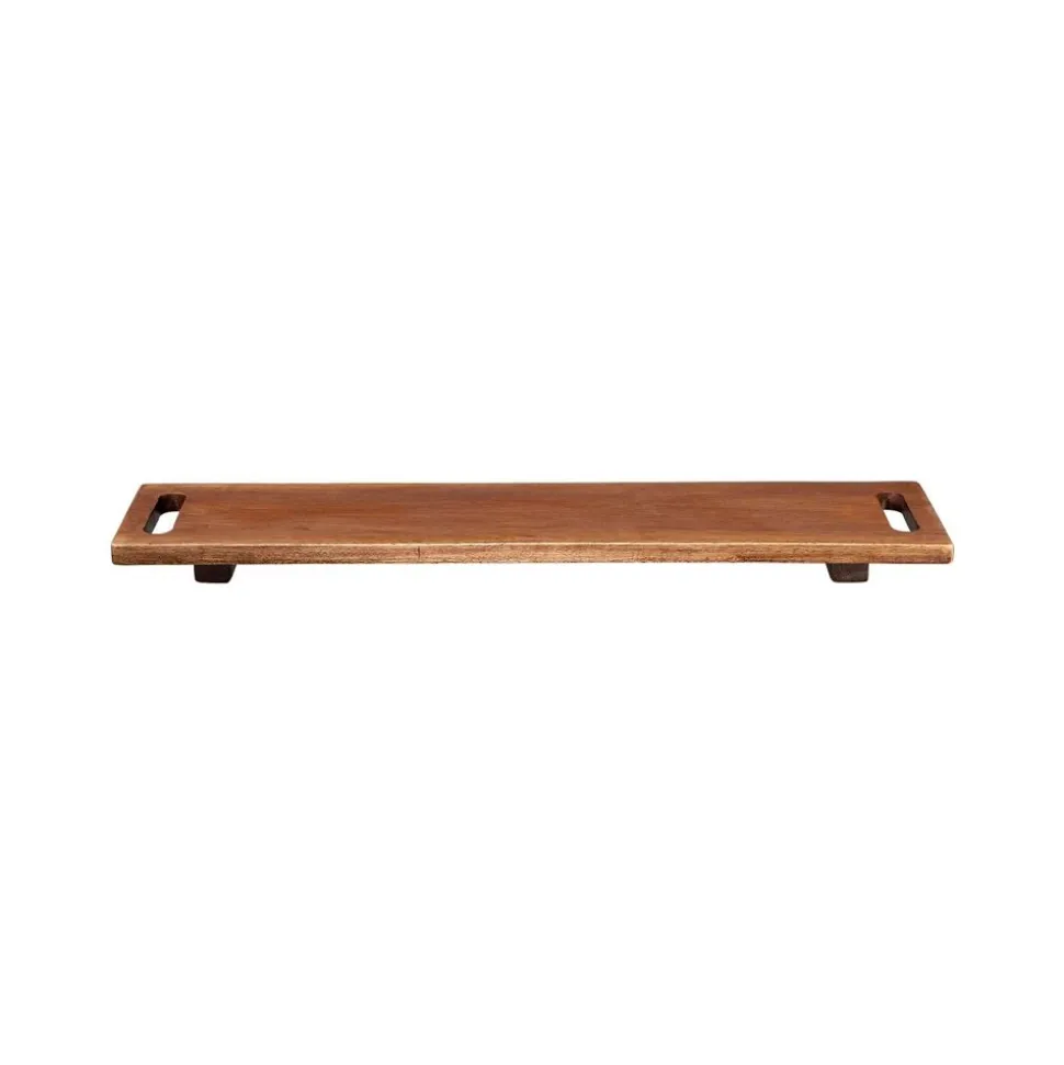 Grote houten plank op pootjes uit de ASA Selection houtserie. Met een lengte van 60 cm, een breedte van 13 cm en een hoogte van 3 cm biedt deze grote houten plank voldoende ruimte voor heerlijke baguettes, kleine hapjes, vers fruit en kaas- en worstspecialiteiten. De donkerbruine tint van het acaciahout harmonieert perfect met wit of gekleurd porselein, b.v. B. uit de ASA Selection serie apero novo.