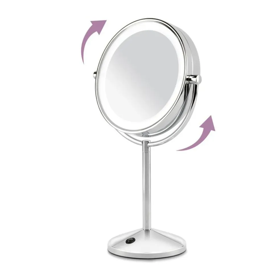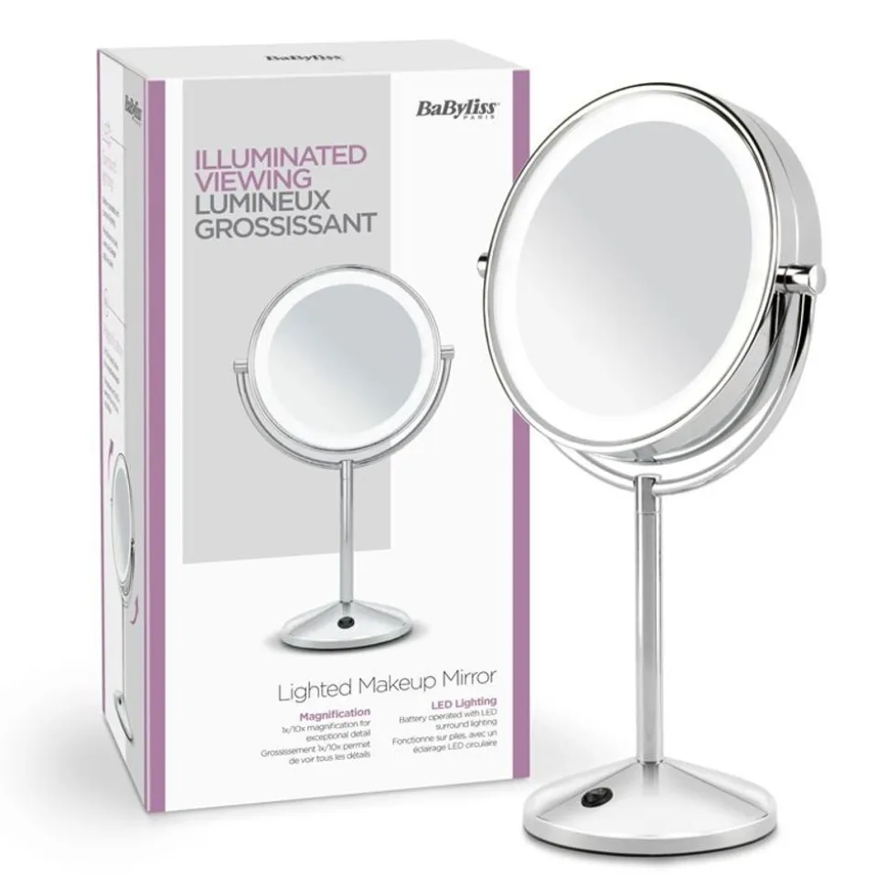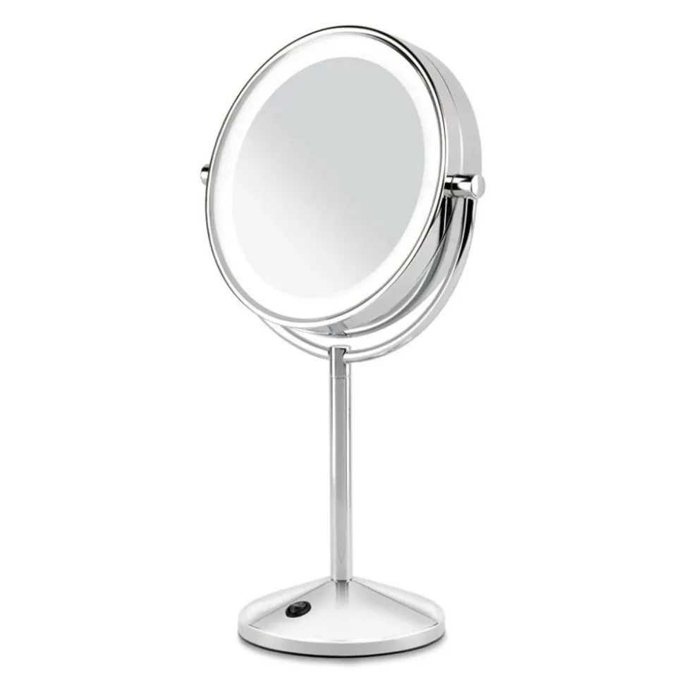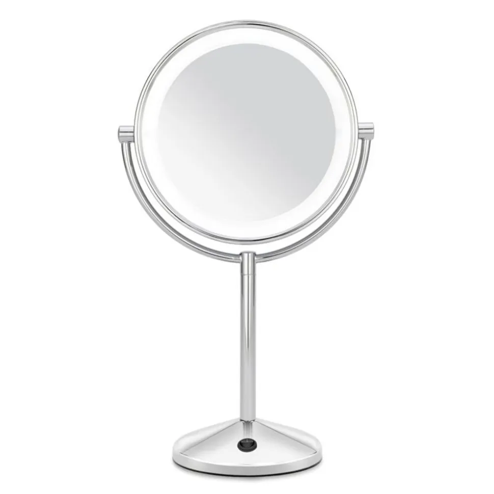 Onze dubbelzijdige LED Make-up Spiegel is een compacte spiegel met zachte verlichting rondom, die zorgt voor een kristalheldere reflectie. Wissel eenvoudig tussen de reguliere spiegel aan de ene kant en de 10x vergrotende spiegel aan de andere kant, die geschikt is voor het meer gedetailleerde werk. Vereist 3 AA-batterijen.