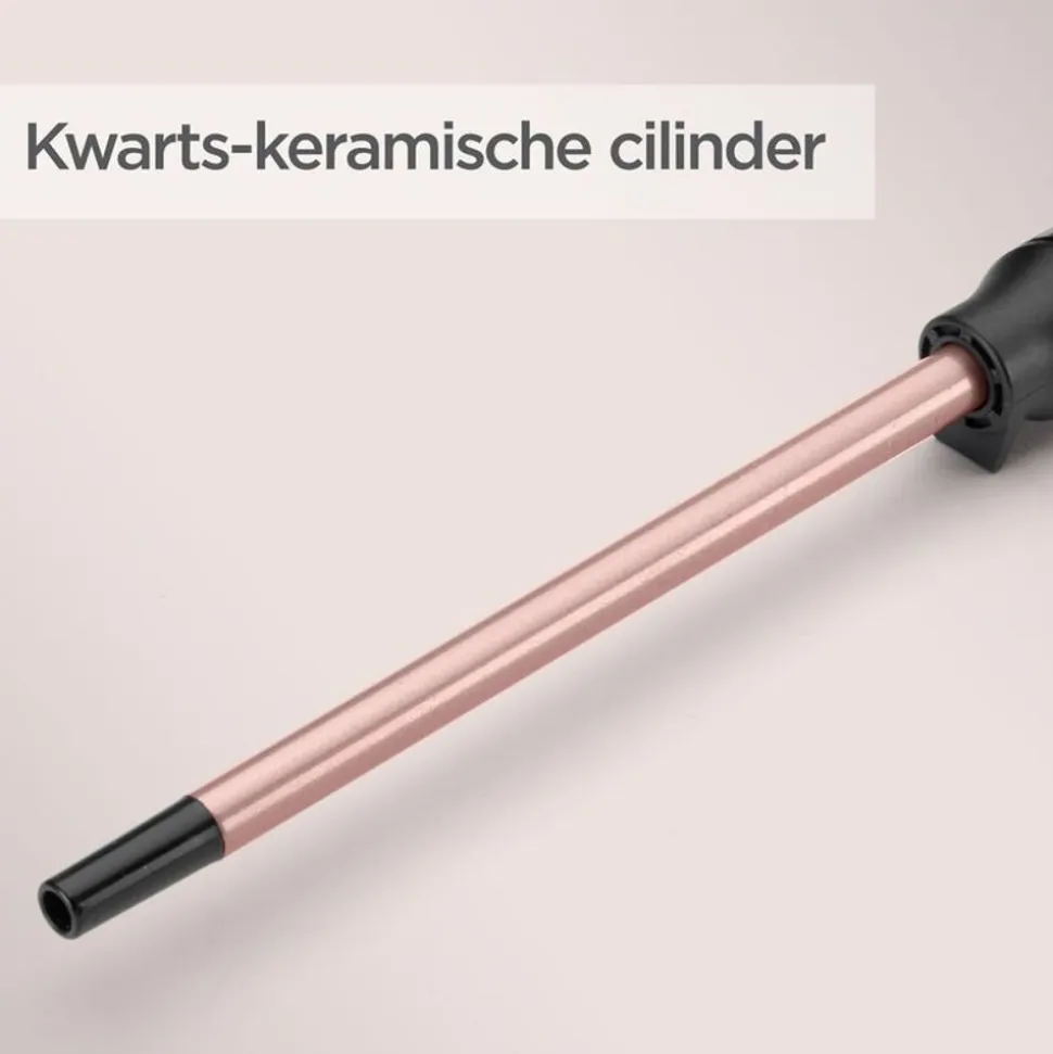 Deze Tight Curl Wand creëert kleine krulletjes die lang in model blijven, voor een glamoureus avondje of om textuur toe te voegen of te definiëren. De ultrasmalle keramische cilinder van 10 mm garandeert in een mum van tijd perfect gedefinieerde krullen. De tang heeft ook een lange cilinder om het krullen van langer haar makkelijker te maken.