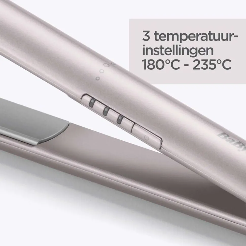 De prachtige Mauve Lustre stijltang, met ultra-gladde titanium-keramische platen, maakt het haar glad en glanzend. Dankzij de snelle opwarming en variabele temperatuurregeling, met een toptemperatuur van 235°C, is deze stijltang geschikt voor alle haartypes. Met het voordeel van multi-voltage is de stijltang ideaal voor op reis. Onderdeel van onze Mauve Lustre Collectie.