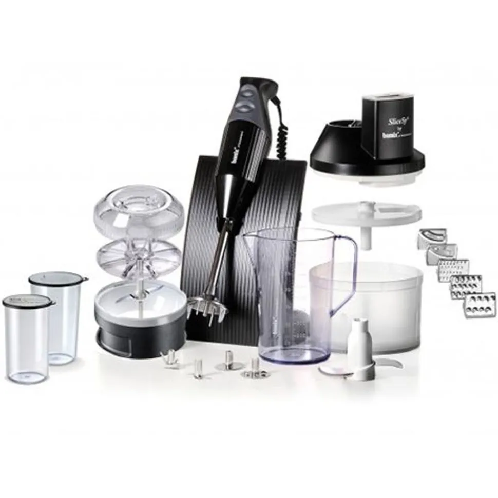 bamix® is het kleinste maar meest efficiënt en veelzijdige keukenapparaat ter wereld. Dankzij de verschillende bamix® accessoires, vormt het toestel de ideale helper voor een groot aantal taken. Het apparaat kan worden gebruikt om te hakken, pureren, emulgeren, mengen, kloppen, pulveriseren en roeren. bamix® is uiterst makkelijk te bedienen en schoon te maken. Met slechts enkele accessoires, zoals de SliceSy® en de Processormolen, meestert uw bamix® alle taken in uw keuken.
