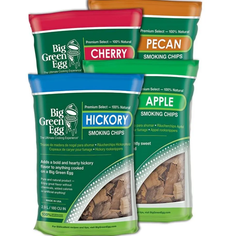 Elke Big Green Egg-chef heeft zijn eigen stijl. Met de originele Wood Chips geef je al je gerechten een karakteristiek rokerige smaak. Meng de (geweekte) houtsnippers door je houtskool of strooi een hand Wood Chips over de houtskool heen. Of doe het allebei: dat is een kwestie van smaak. Net als welke soort Wood Chips je kiest: hickory, pecannoot, appel of kers.