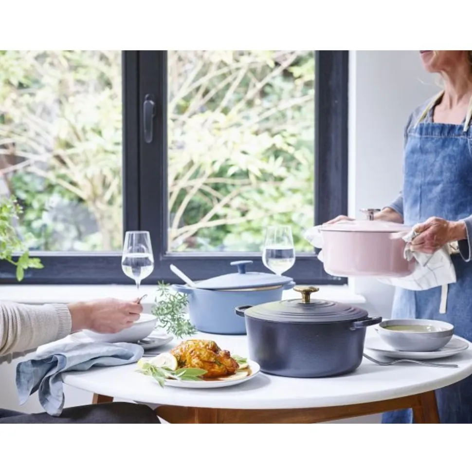 Sinds 1851 maakt BK pannen met een slim design en is BK voorloper op het gebied van onder andere geëmailleerde pannen. In de Bourgogne collectie zie je de ervaring, traditie en vakmanschap terug. Deze pannen staan prachtig op het fornuis maar ook op een chique gedekte tafel. De karakteristieke braadpannen zijn gemaakt van ambachtelijk gietijzer en doen verleden en heden samensmelten. De prachtige BK Bourgogne gietijzeren braadserie is een echte krachtpatser in de keuken en verkrijgbaar in diverse eigentijdse kleuren.