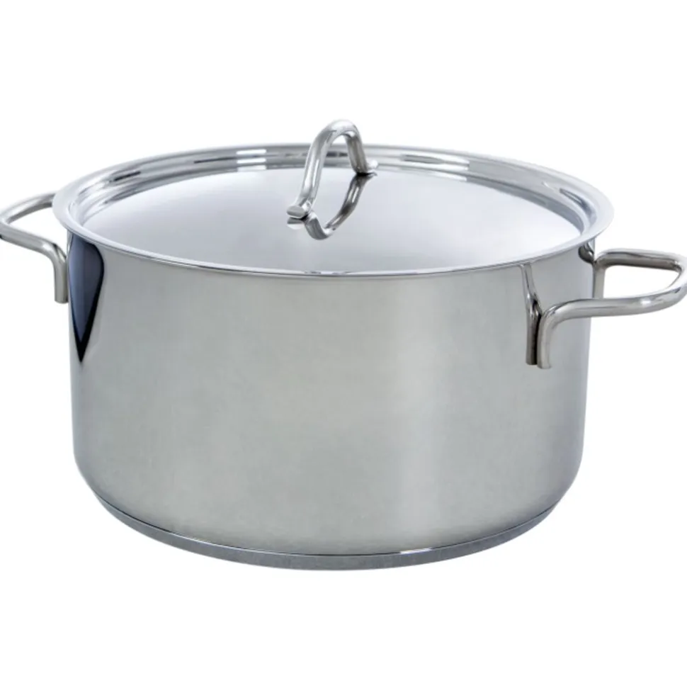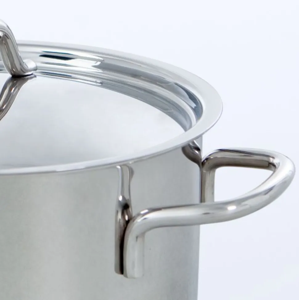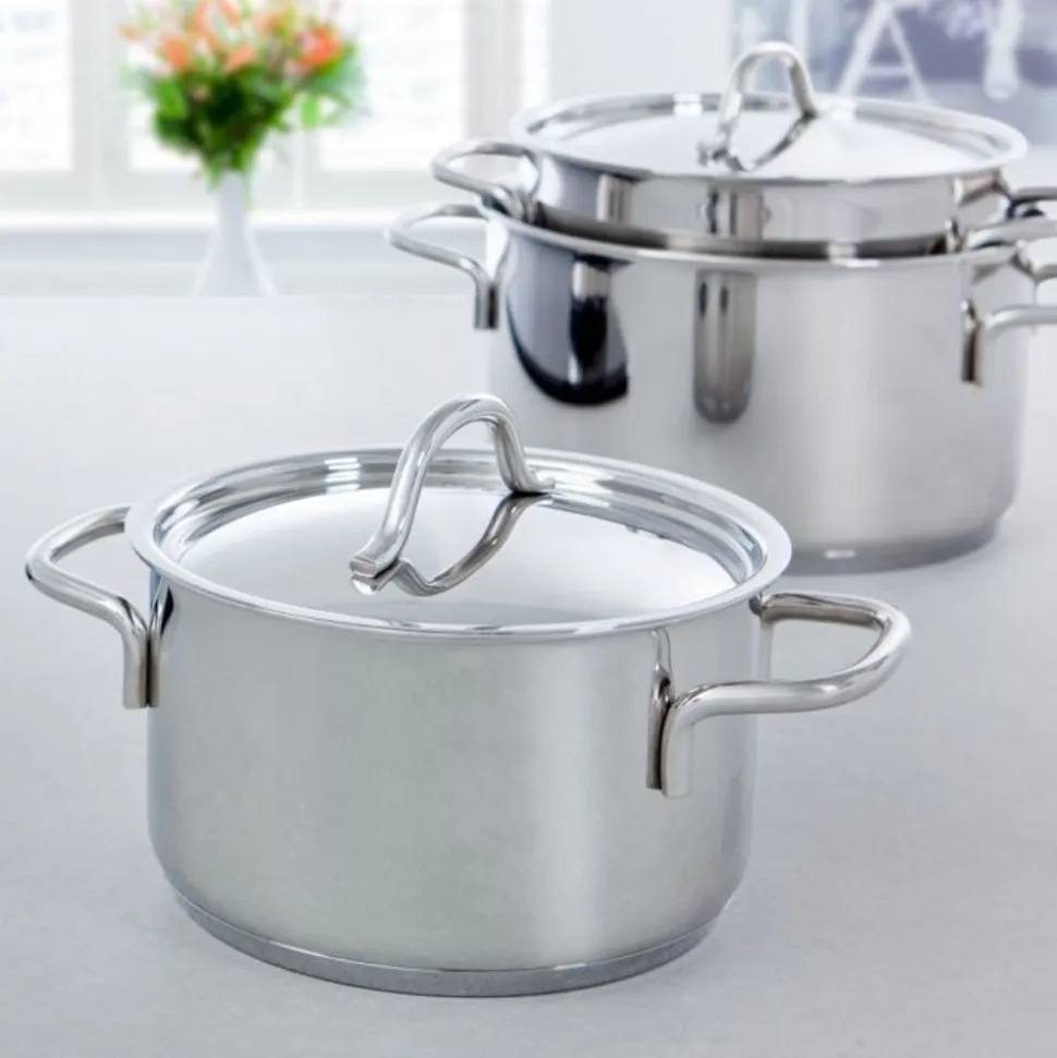 De BK Profiline is een pannenserie zonder opsmuk die ongecompliceerd gemak biedt op elk fornuis. De pannen hebben een body van hoogglans gepolijst roestvrij edelstaal met een handige schenkrand. De body en bodem lopen vloeiend en afgerond in elkaar over, wat zorgt voor moeiteloos omroeren en eenvoudige reiniging. De grepen en stelen liggen prettig in de hand en zorgen voor een veilige grip tijdens het kookproces. De deksels zijn hoogglans gepolijst en maken het geheel mooi af.