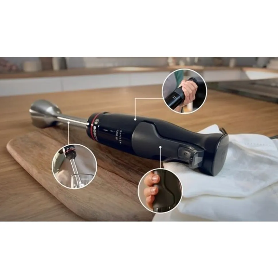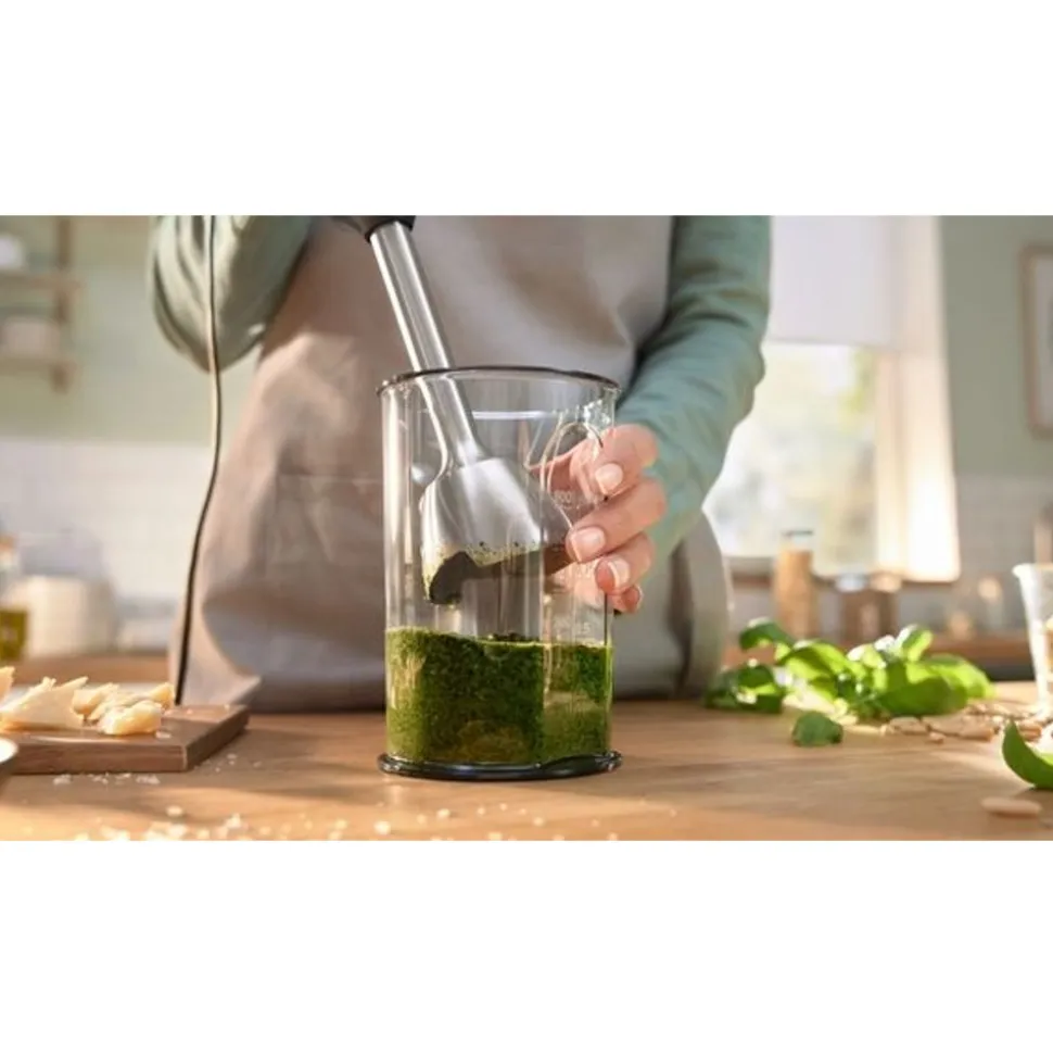 Voor perfecte resultaten. De ErgoMaster met krachtige motor maakt mengen, hakken en opkloppen nog eenvoudiger dankzij de meegeleverde accessoires. Soep, sauzen, noten of groenten, zelfs de moeilijkste ingrediƫnten worden moeiteloos en in een handomdraai bereid.
