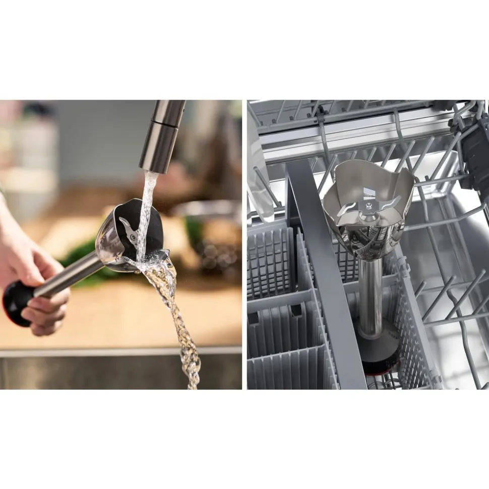 Probleemloos schoonmaken hoeft maar een paar seconden te duren. Als je klaar bent met blenden, laat je de mengvoet met één simpele klik los. Nu kun je hem snel en gemakkelijk schoonmaken onder stromend water of in de vaatwasmachine.