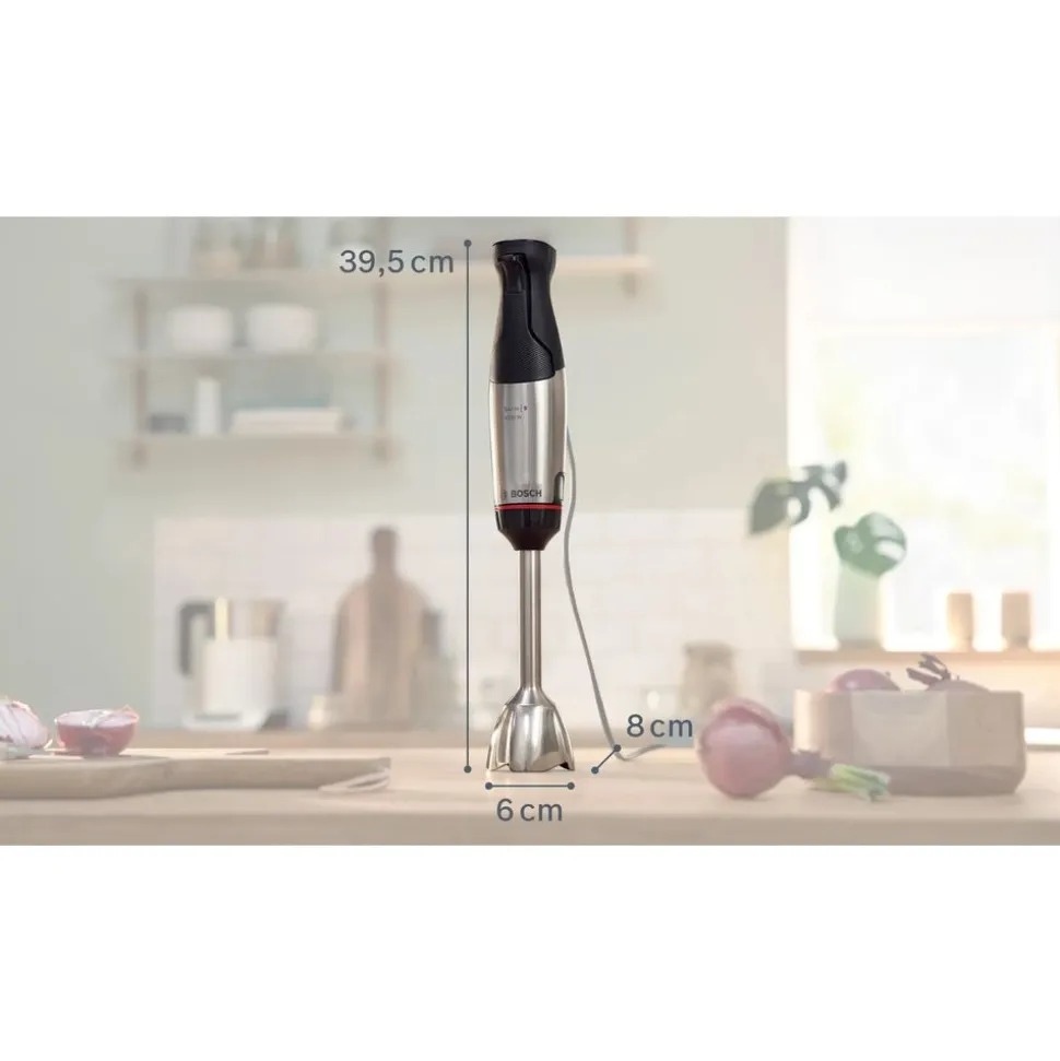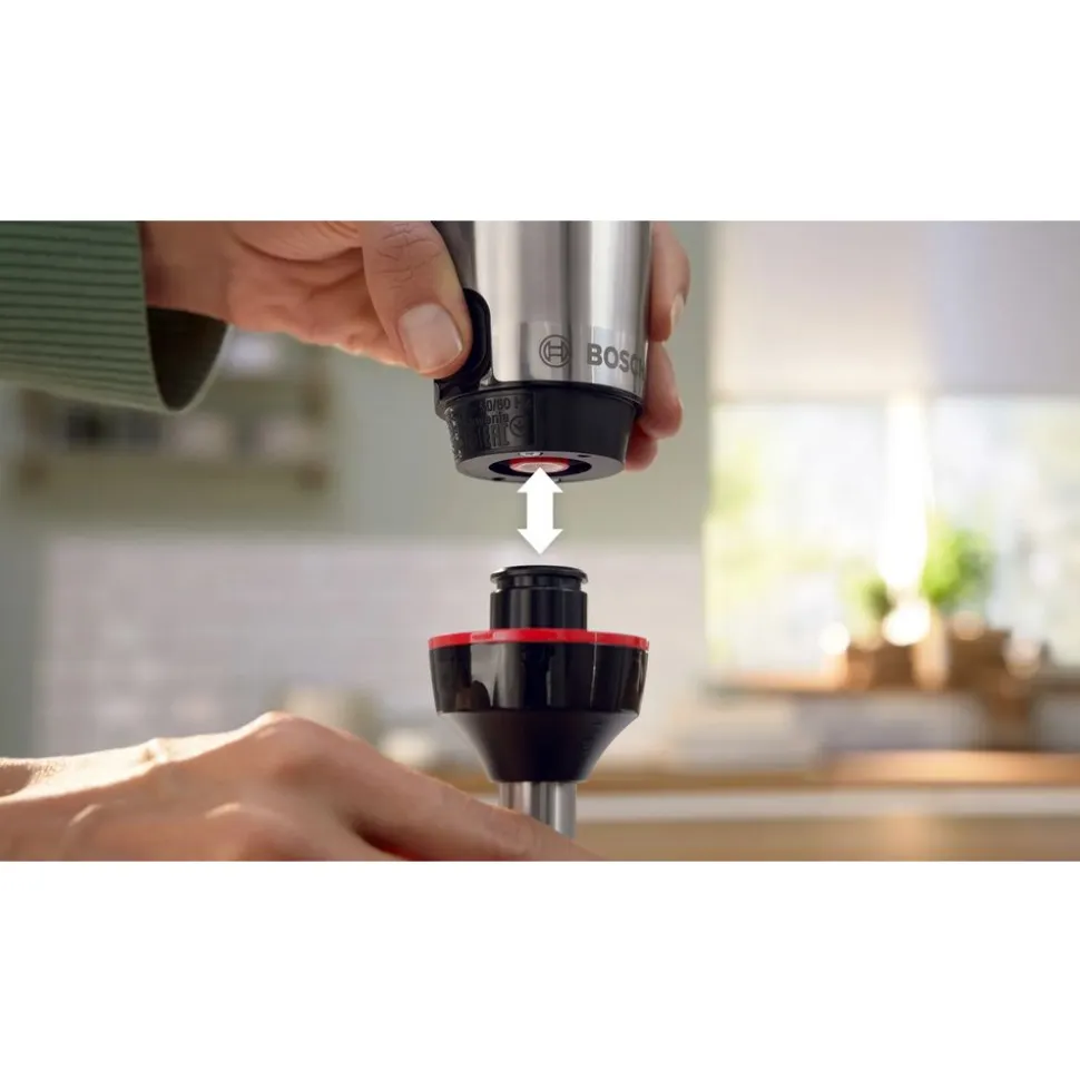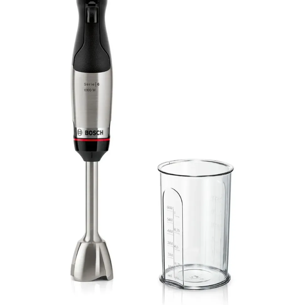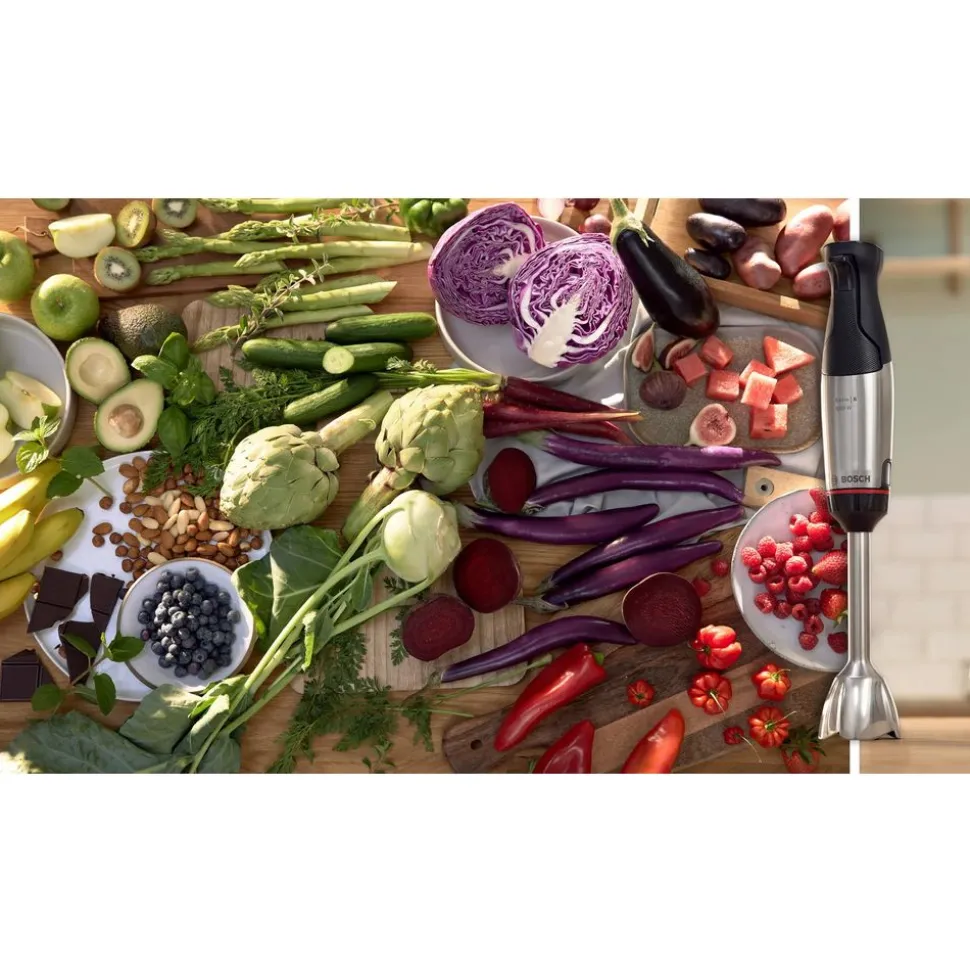 De ErgoMaster Serie 6 staafmixers maken je gerechten nog lekkerder: soepen worden lichter, spreads gladder. De krachtige motor, de speciaal gevormde bel en de 4 scherpe messen zorgen voor een perfecte textuur. Bereid je voor op een nieuw niveau van kookbeleving dankzij de grote snelheidsregeling, de stille werking en de ergonomische handgreep. De kracht van de luchtgekoelde, krachtige motor wordt zonder slijtage overgedragen op de messen. Tot slot kunt u gerust zijn, want het bevat alle knowhow van Bosch en heeft een onbreekbaar keramisch drijfwerk. Dit is een gepatenteerde wereldinnovatie.