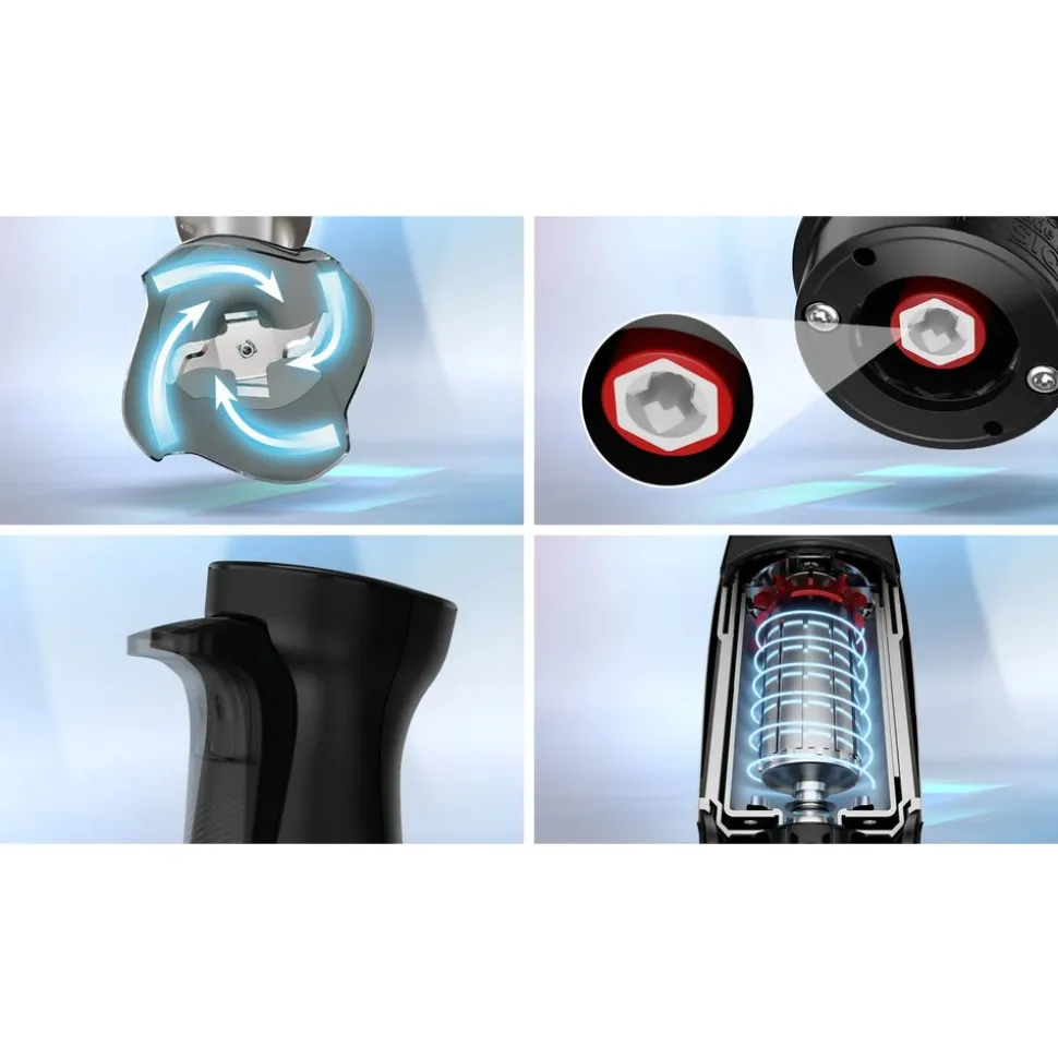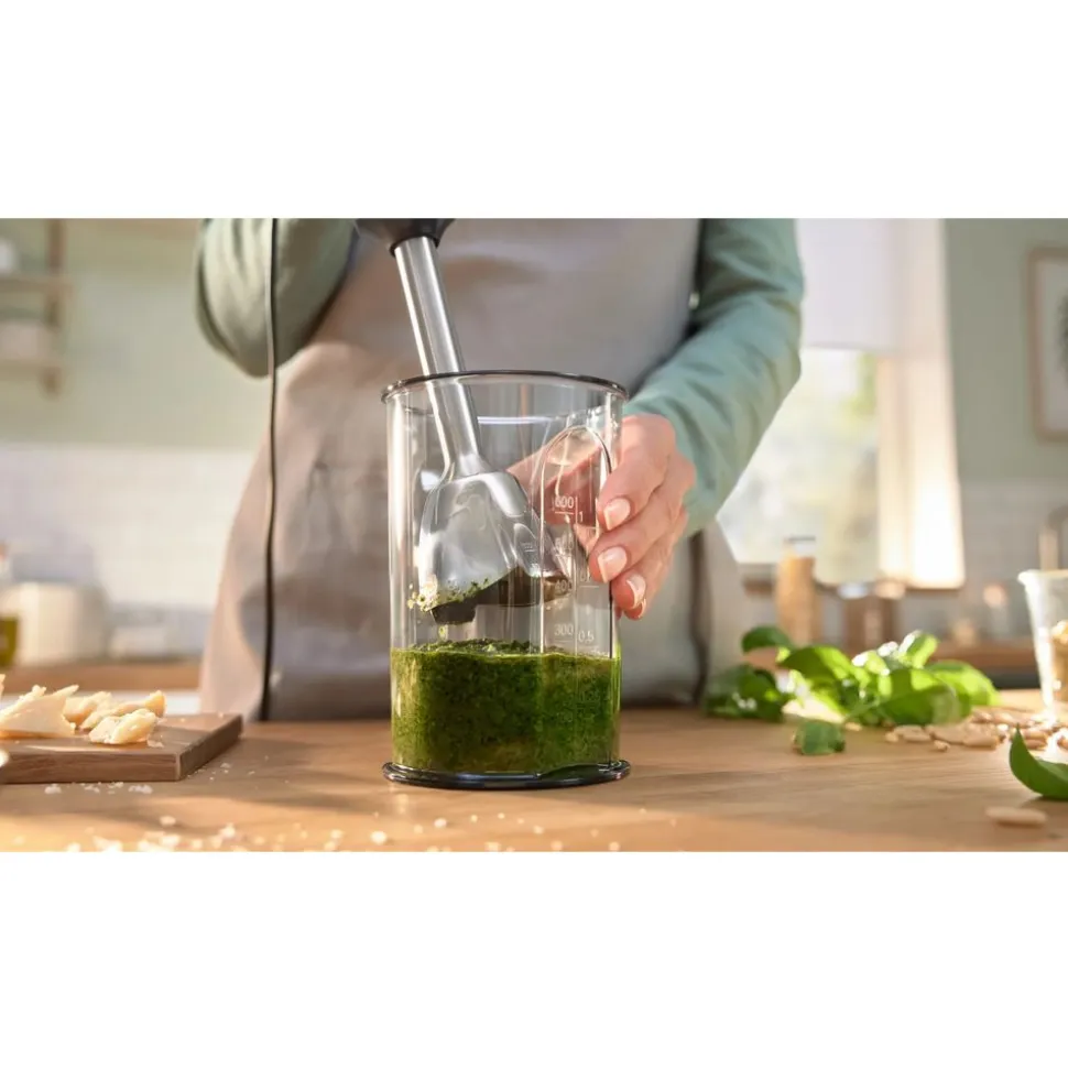 Ervaar een comfortabele bediening tijdens het blenden. De ErgoMaster heeft een soft-touch, anti-slip handvat dat een stevige grip verzekert om veilig te mixen. Dankzij het ergonomische ontwerp ligt het toestel perfect in de hand zonder dat het wegglijdt.