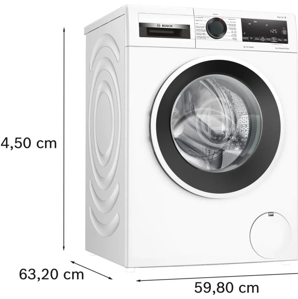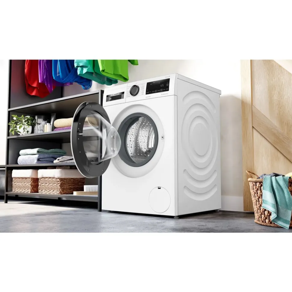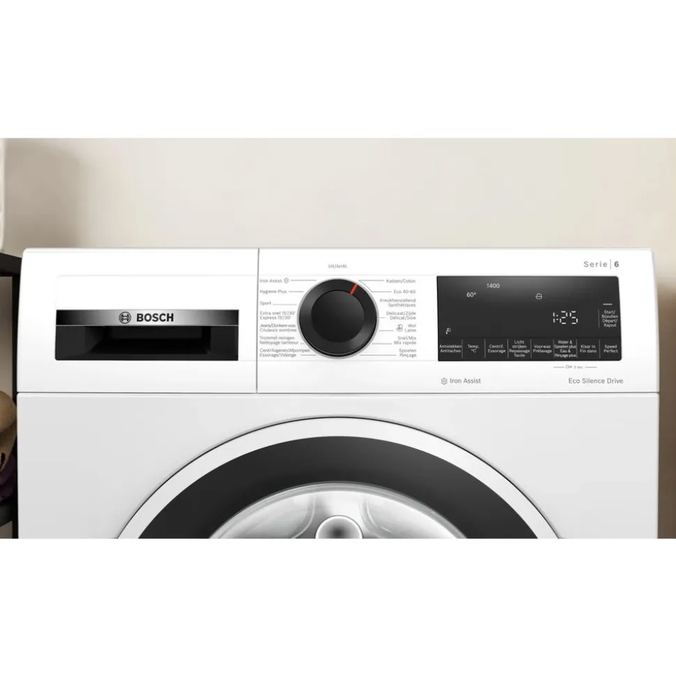 Iron Assist van Bosch voegt natuurlijke stoom toe aan het programma. De functie stoomt kleding gedurende 20 minuten en vermindert kreuken tot 50%*. Resultaat: de was is merkbaar gladder én een stuk eenvoudiger om te strijken. *Test nr. E-0323-PT-22 van het Deutschen Institute für Textil- und Faserforschung Denkendorf (DITF) van 12.07.22, met betrekking tot de kreukvermindering van katoenen kledingstukken (T-shirts en overhemden) in het Iron Assist-programma – volgens DIN EN ISO 15487 in vergelijking met niet met Iron Assist behandeld textiel.