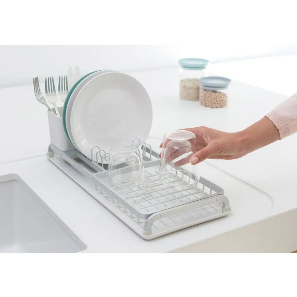 Dit compacte afdruiprek is de perfecte oplossing als je minder plaats hebt op het aanrecht. Voldoende ruimte voor 5 borden en natuurlijk ook geschikt voor glaswerk, bekers, bestek enz. Vervaardigd van corrosiebestendige materialen.