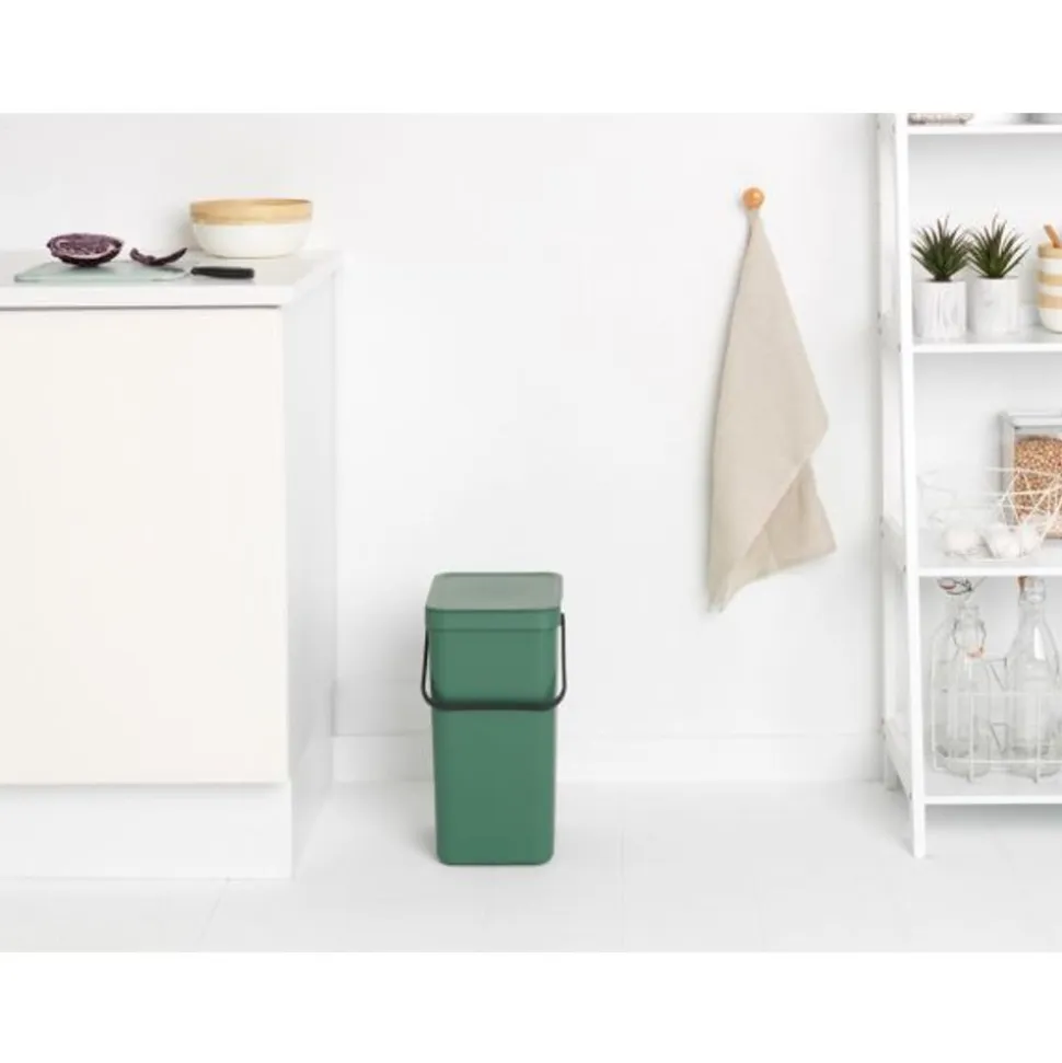 Zamel je lege verpakkingen, flessen en blikjes apart in? Je organiseert het allemaal met gemak met deze Brabantia Sort & Go afvalemmer van 16 liter. Zet hem in een hoek, tegen de muur of hang hem aan de meegeleverde muurbeugel en bespaar nog meer vloeroppervlak. Volle bak? Legen is een fluitje van een cent, door het grote hengsel en de bodemgreep voor makkelijk dragen en legen. Dat is nog eens organiseren!