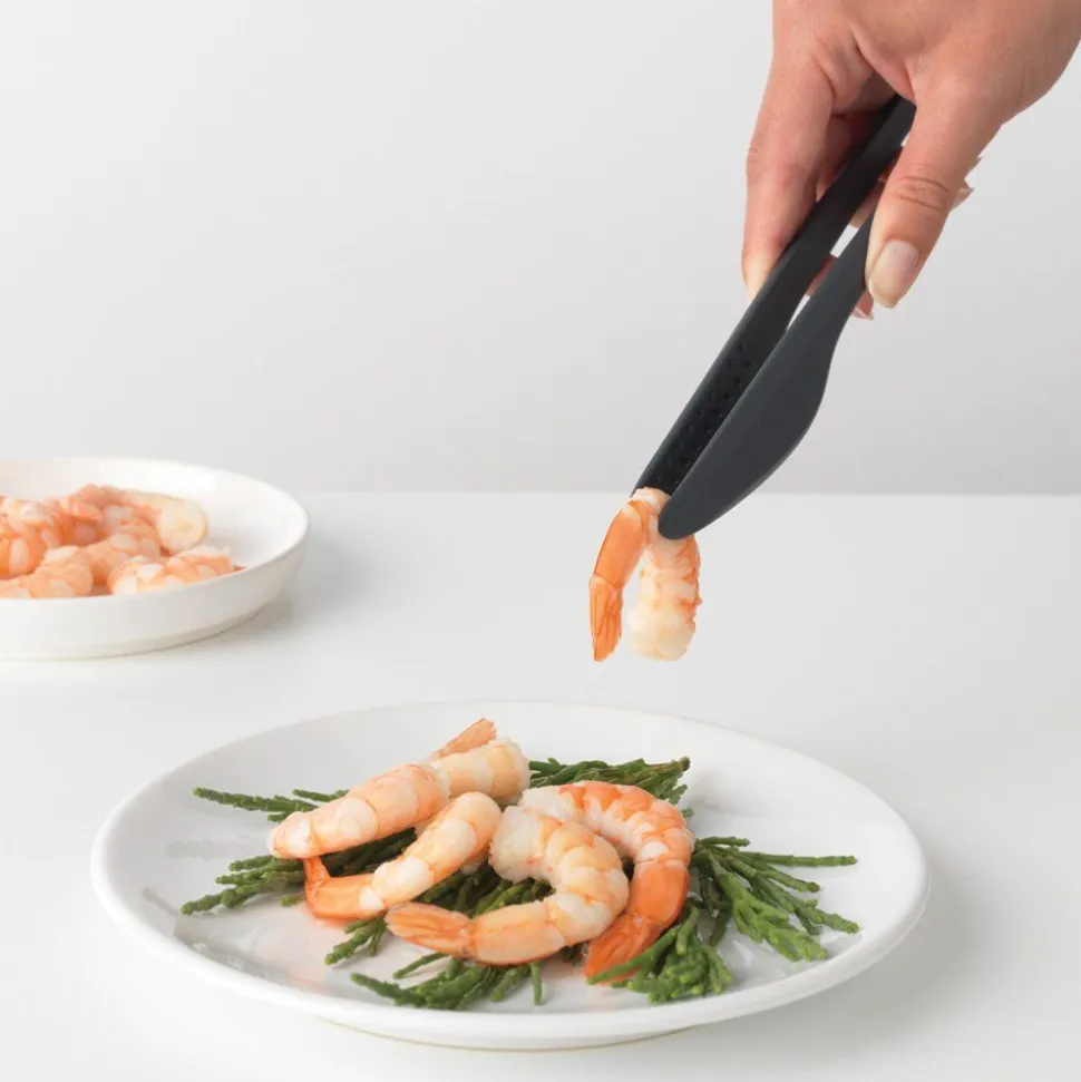Met deze keukentang plus serveertang kunt u vlees, groenten of vis serveren en omdraaien zonder erin te hoeven prikken. Ideaal voor grillen, barbecueën en bakken. Voor de fijne kneepjes.