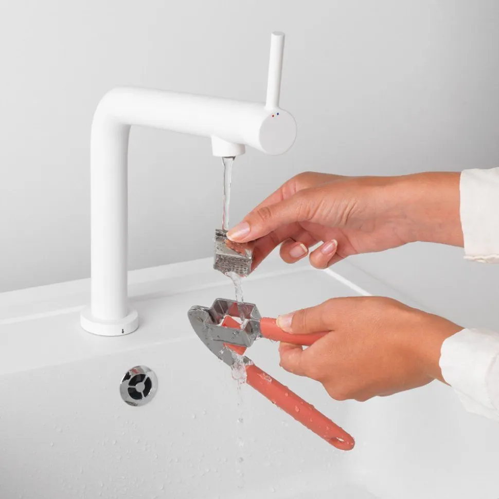 Dol op knoflook, maar niet op het snijden? Deze knoflookpers met gekleurd handvat vrolijkt je humeur en je keuken op. Snel, efficient en makkelijk schoon te maken, dankzij het verwijderbare persdeel.