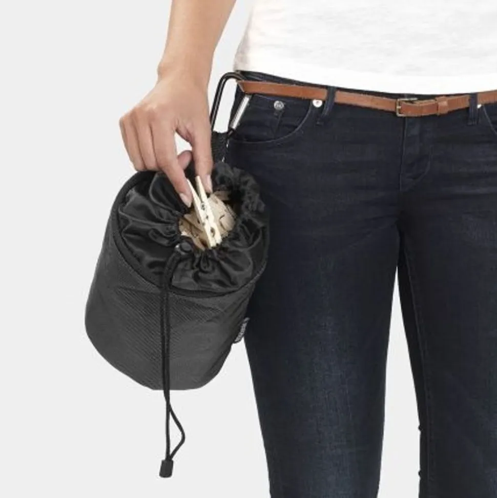 Houd je wasknijpers bij de hand – berg er tot 150 op in het Brabantia wasknijpertasje. Hang hem aan je droogmolen, waslijn, droogrek of broekriem om je knijpers bij de hand te houden. Deze duurzame en stevige wasknijperzak heeft zelfs een sluitkoord om je wasknijpers bij elkaar en schoon te houden. Een top tasje.