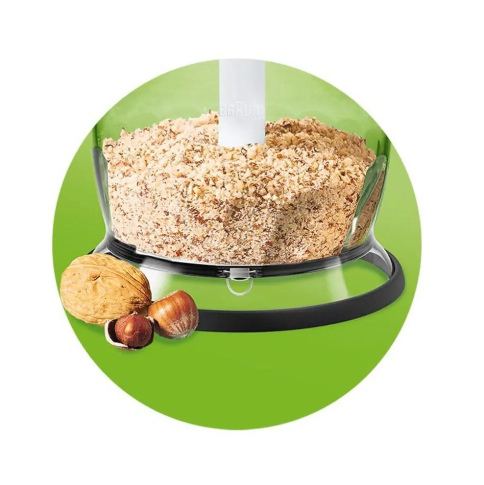 Ja, ook hakken is mogelijk met deze veelzijdige Braun HM 3137 WH handmixer. Er wordt namelijk ook een grote 500ml hakmolen geleverd bij deze handmixer. Hiermee hakt u noten, kaas, chocolade of groenten fijn in enkele seconden.Â