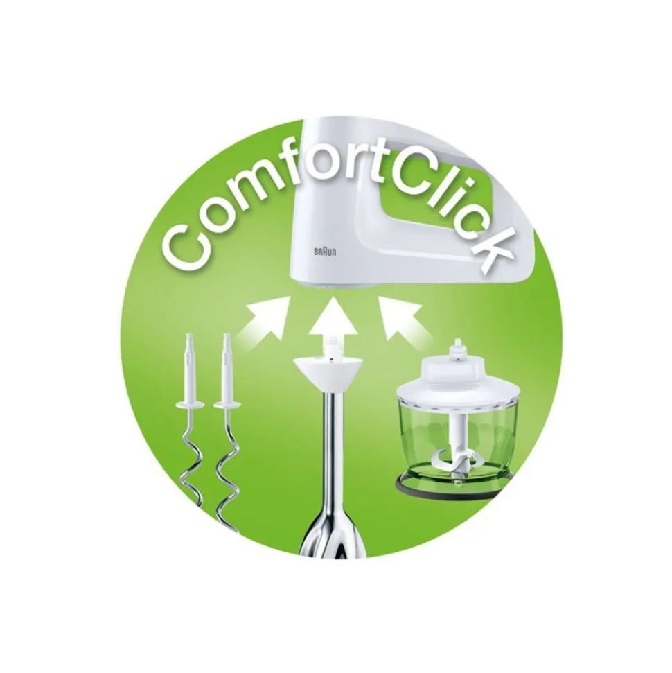 Extra veelzijdige handmixer? Jazeker! Want hij doet ook dienst als staafmixer. Zo maakt u met deze handmixer ook gemakkelijk verse soep met de RVS PowerBell staafmixervoet. Pureer harde en zachte ingrediënten tot een egale soep zonder klontjes en zonder dat uw keuken vies wordt. Door het ComfortClick systeem bevestigt u ook deze voet aan de voorzijde van deze handmixer. Niet alleen veelzijdig maar dus ook uitermate handig, deze handmixer.