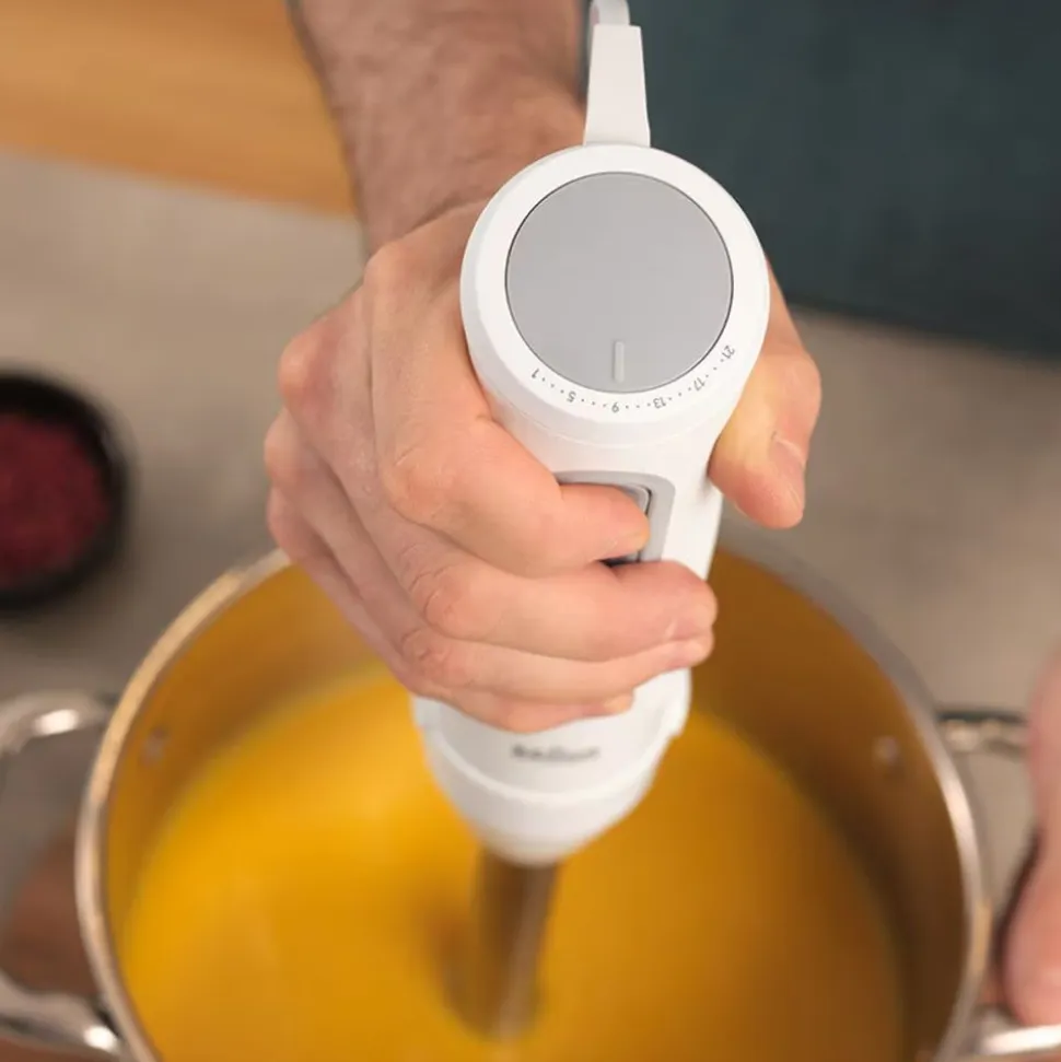 Vergroot je creativiteit in de keuken met de MultiQuick 5. Met het gepatenteerde EasyClick-Systeem Plus wissel je eenvoudig tussen handige accessoires. Dankzij de PowerBell VPlus-technologie krijg je tot wel 4 keer fijnere resultaten*. Een extra maalmesje en 6 ribbels aan de binnenkant zorgen ervoor dat het voedsel beter in contact komt met de messen, waardoor er meer wordt gesneden per rotatie. Voor krachtige precisie in de palm van je hand biedt de MultiQuick 5 maar liefst 21 gemakkelijk instelbare snelheden met een handig snelheidswiel voor één hand. Met een 1000 watt motor kun je snel en efficiënt mengen.