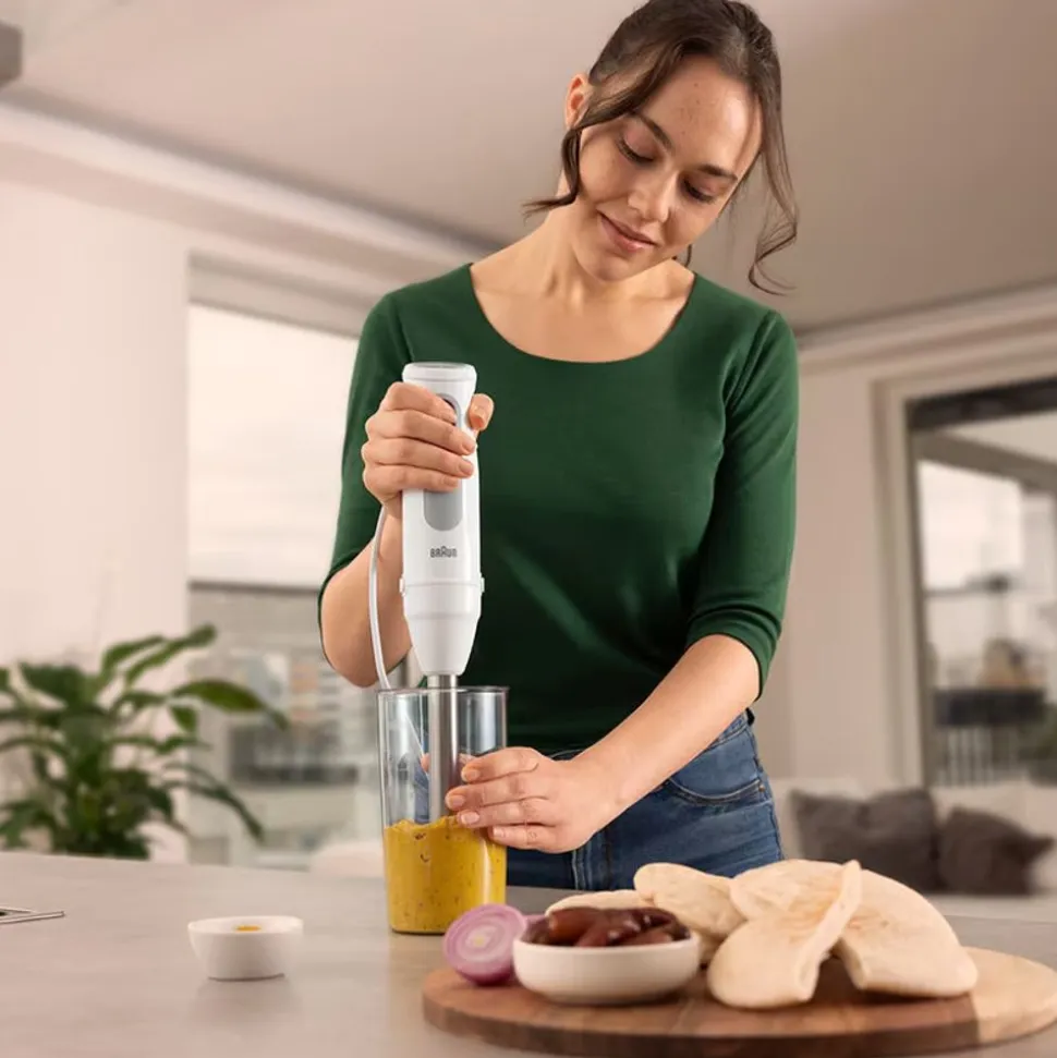Up to 4x finer results*. An extra milling blade and 6 inner ribs create more interaction between food and the blades. *Vs. Braun MQ10.000P on almond milk.