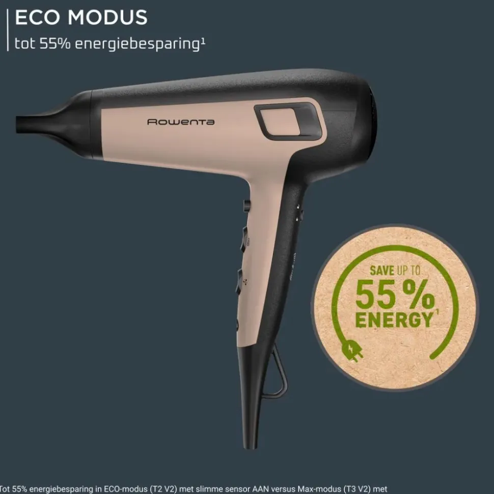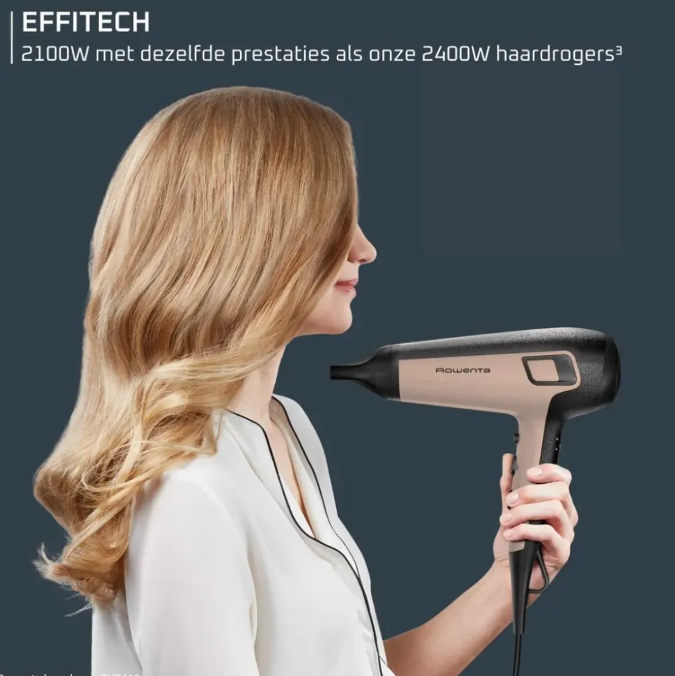 • Effitech-technologie: efficiënt drogen, 2100W verbruik met prestaties zoals 2400W