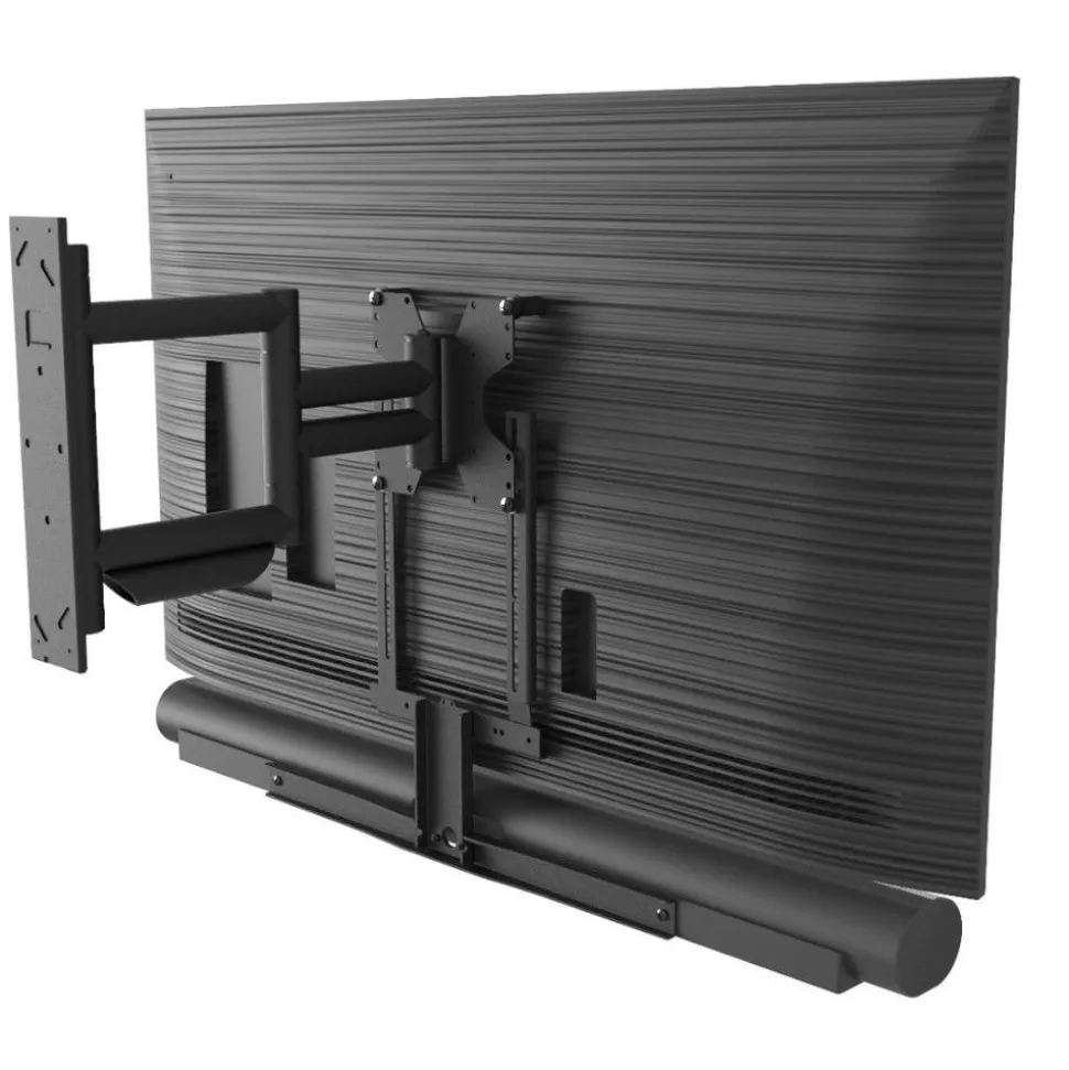 De beste plek voor jouw soundbar is direct onder de televisie. Met een soundbar frame maak je één combinatie van jouw televisie en soundbar. Hangt jouw televisie op een draaibare tv beugel? Dan draait de soundbar mee met de televisie. Beeld en geluid uit dezelfde richting zorgen voor een optimale kijk en luisterbeleving.