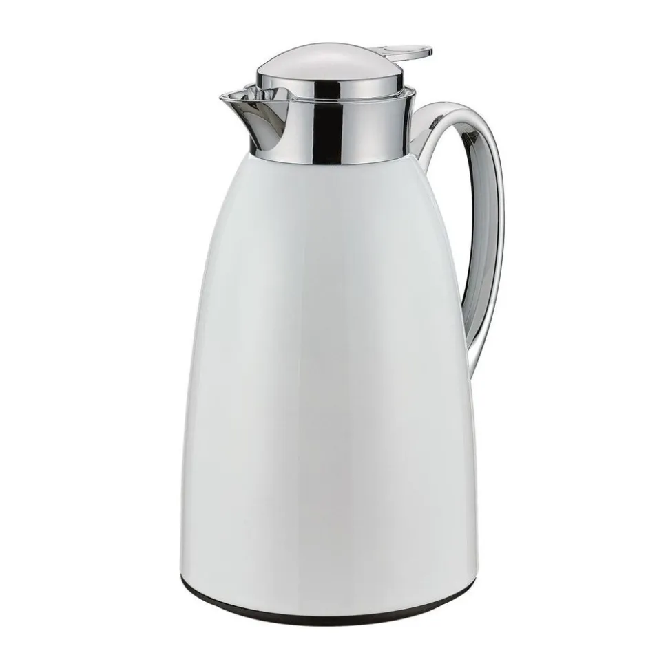 Gelakt roestvrij staal, inzetstuk van vacuümgehard glas, schroefdop met praktische eenhands-schenkknop, inhoud 1 liter, Ø 14 cm, hoogte 27 cm Inhoud: 1 L Hoogte: 27 cm / Ø 14 cm Roestvrij staal