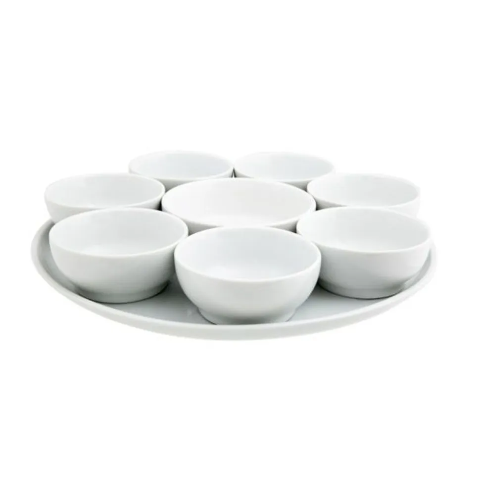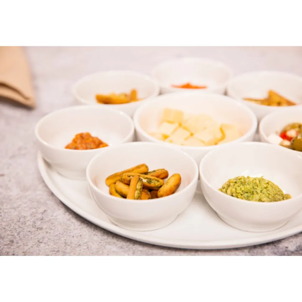 Aperoset Wit D31xh4,2cm 9-delig Bord D31cm – 7 X D9.2xh4 – 1 X D12xh4cm