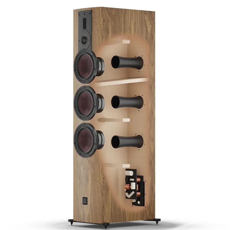 De behuizing van de vloermodellen is aan de binnenkant opgedeeld in afzonderlijke kamers, zodat er geen drukverschillen ontstaan tussen de speakers in dezelfde behuizing. En dat voorkomt staande golven in de behuizing zelf. Zo kunnen de eenheden afzonderlijk worden afgesteld, zonder dat ze elkaar beïnvloeden. Net als bij de EPIKORE heeft elke kamer zijn eigen, gloednieuwe ‘Continuous Flare’-reflexpoort die geen rechte lijnen heeft. Dit optimaliseert de luchtstroom, maakt de poort lineairder en elimineert resonanties en poortruis. Kortom, DALI heeft alles op alles gezet voor een zo strak mogelijke basweergave.