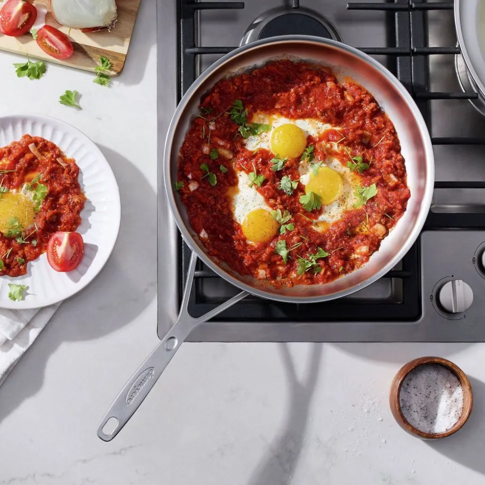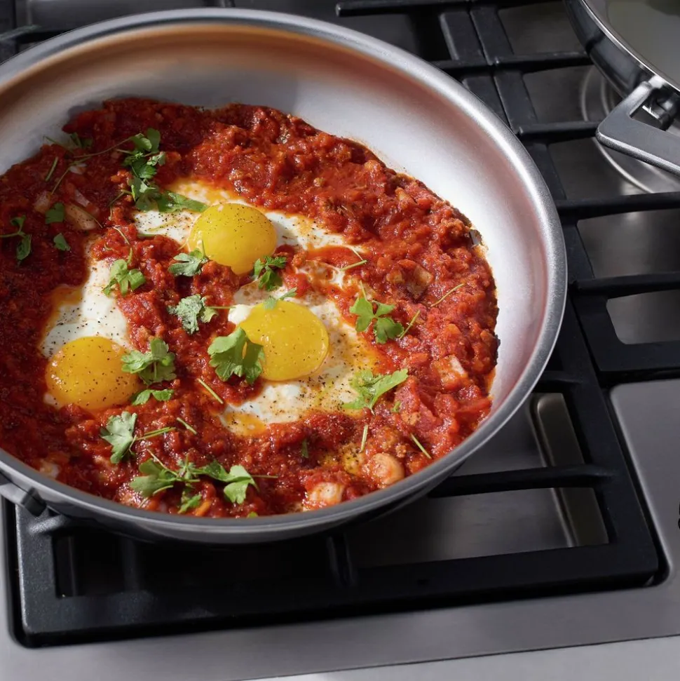 De pan kan worden gebruikt op alle warmtebronnen, inclusief inductie, en is ook ovenbestendig. Vermijd echter het gebruik van de boostfunctie op inductie, aangezien deze een te intense warmte afgeeft die het materiaal kan aantasten.