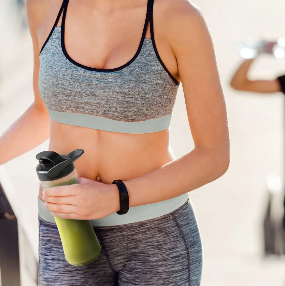 Kies voor een actieve en gezonde levensstijl met de Blend & Balance blender DO734BL van DOMO. Maak smoothies met vers fruit en lekkere groentjes en neem ze mee overal waar je gaat in de drinkfles van 600 ml. Het toestel is perfect om te mixen, blenden, hakken en ijs te malen. Met de bediening kies je zelf de gewenste snelheid met de handige draaiknop of druk op een van de functieknoppen voor smoothies, ijs malen of pulsen. Het mes met 6 bladen zorgt voor perfecte mixresultaten in de glazen kan van 1,5 liter.