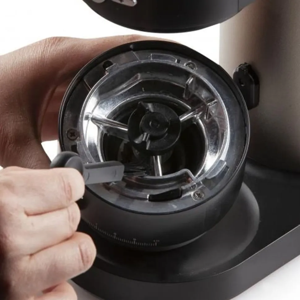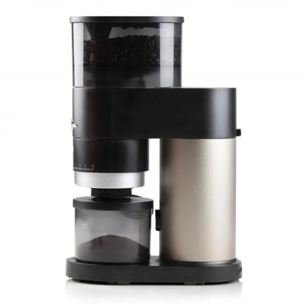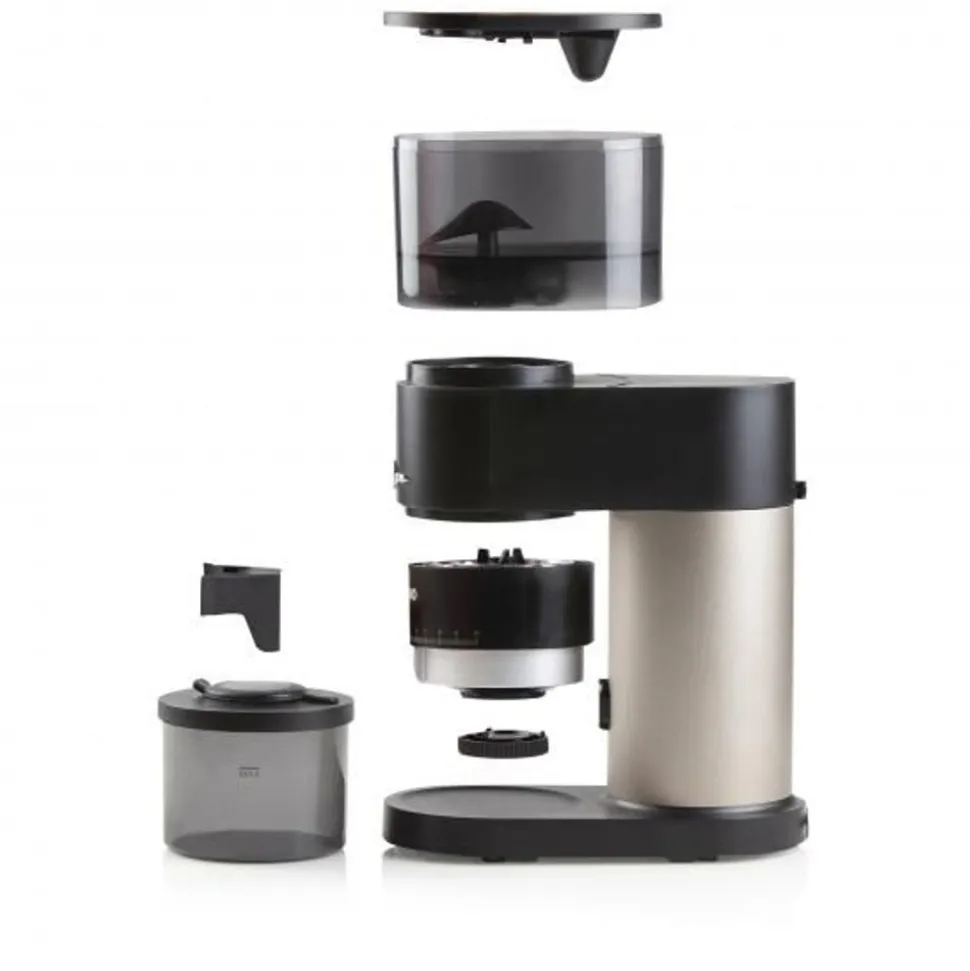 - Conisch maalwerk uit roestvrij staal om de hitte tijdens het malen te minimaliseren en de essentiële oliën in de koffiebonen te beschermen