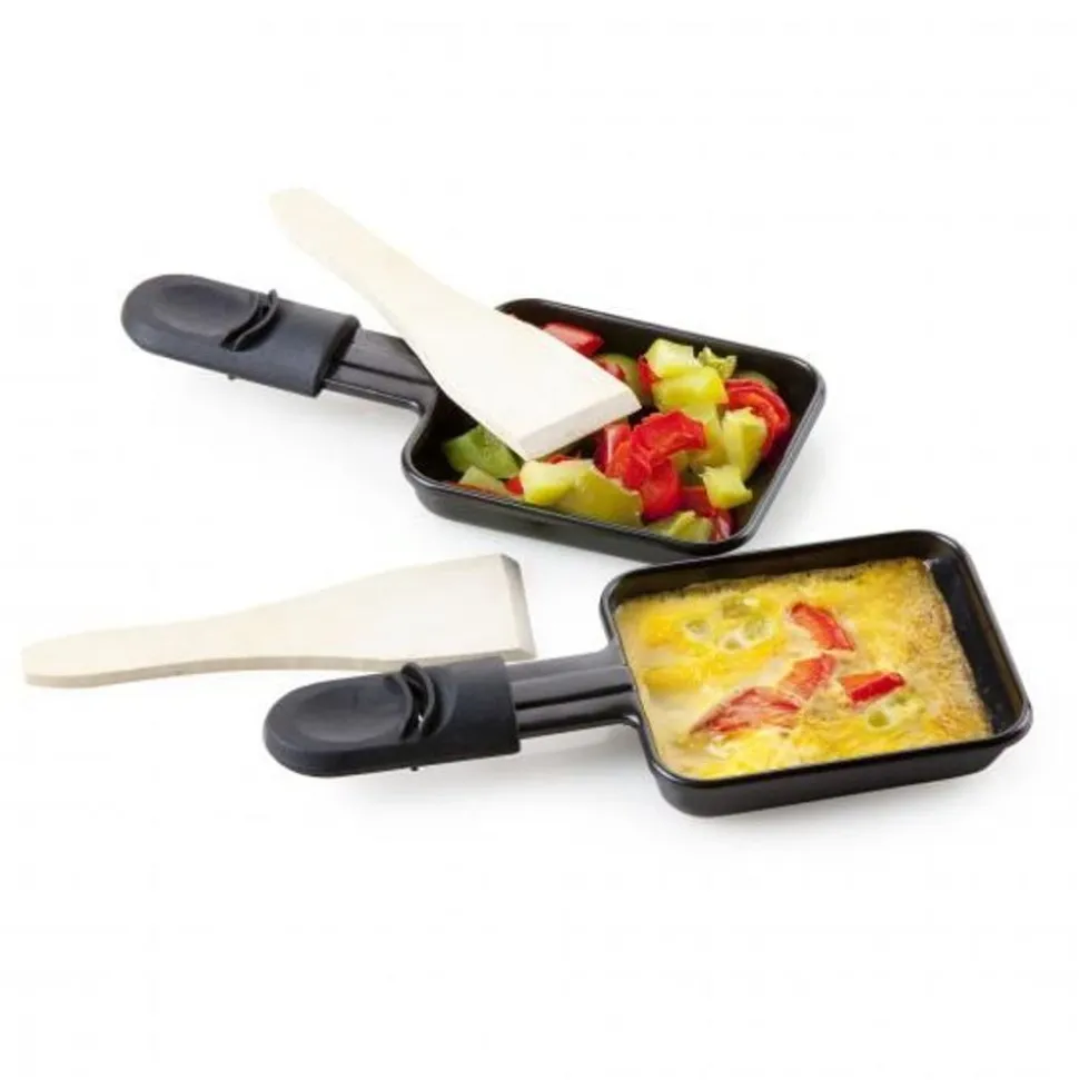 - 8 geëmailleerde raclettepannetjes met antiaanbaklaag
