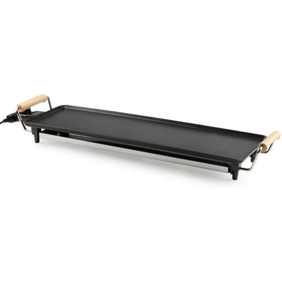 Zin om gezellig te tafelen met het hele gezin? Met de Family XL teppanyaki DO8312TP van DOMO bak je zowel al je groentjes als je vlees, vis of vleesvervangers. Dankzij het grote bakoppervlak van 70 op 22 cm is er voldoende plaats om te koken voor je familie of vriendenkring. Zo kan iedereen zelf de bakwijze kiezen van zijn vlees, vis, groenten… De handvaten in imitatiehout zorgen voor een stijlvol uitzicht. De afneembare thermostaat met draaiknop maakt de teppanyaki gebruiksvriendelijk maar ook eenvoudig te verplaatsen en op te bergen. Bovendien is de bakplaat voorzien van een antiaanbaklaag waardoor het toestel ook onderhoudsvriendelijk is.