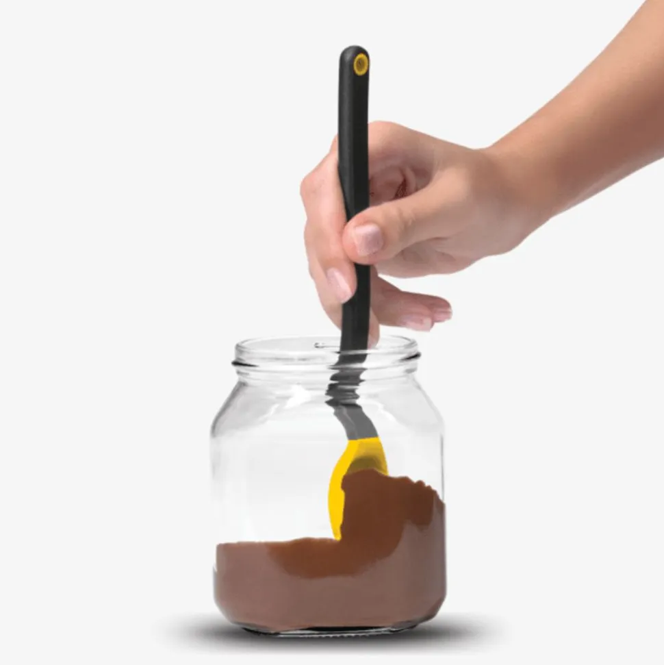 Schraap met de platte siliconen schraperpunt en de flexibele lepelranden alle laatste restjes voedsel uit de pot of kom.