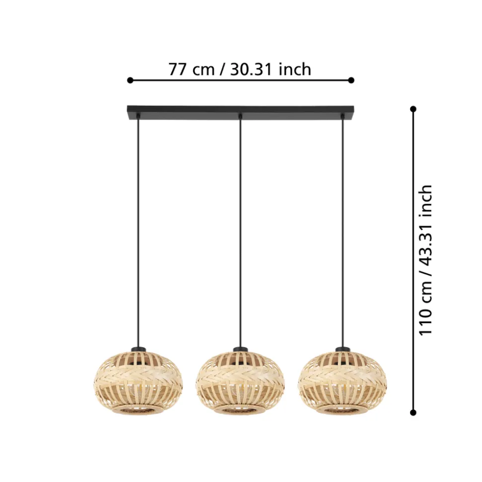 Deze Amsfield 1 hanglamp met drie lichtpunten is gemaakt van zwart staal en hout. Hij is 96cm lang en 26cm breed met een verstelbare hoogte van 1m10. Breng de natuur bij je naar binnen met deze armatuur door drie E27-lichtbronnen van maximaal 40W in te draaien. Deze lichtbronnen zijn niet inbegrepen.