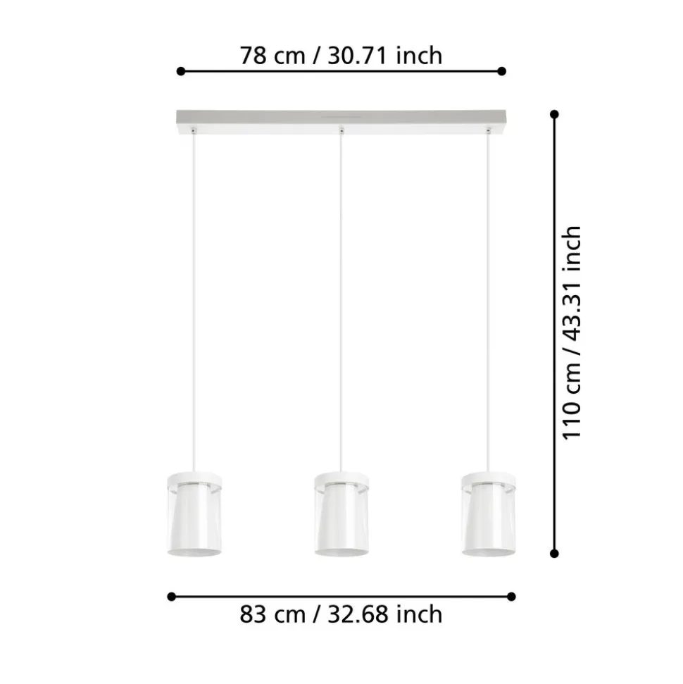 Eglo CHIUSELLO-Z hanglamp staal wit / glas, kunststof helder, wit H: 1100 mm