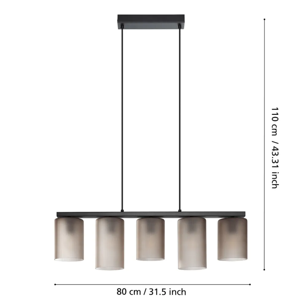 Eglo COLOMERA hanglamp staal zwart / Glas mat grijs H: 1100 mm