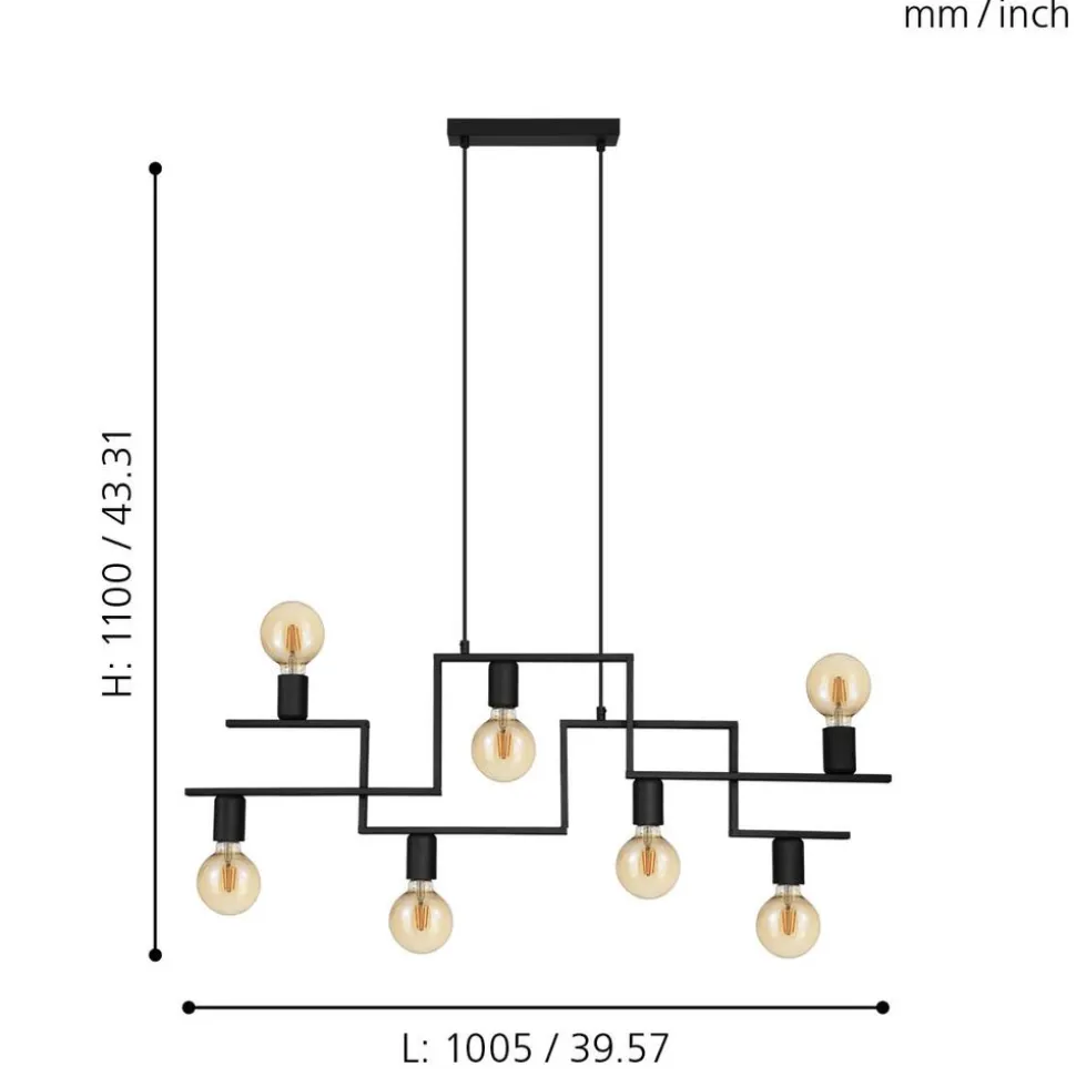 Eglo FEMBARD hanglamp staal zwart H: 1100 mm